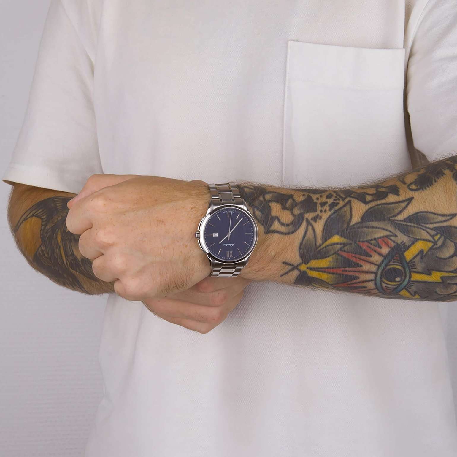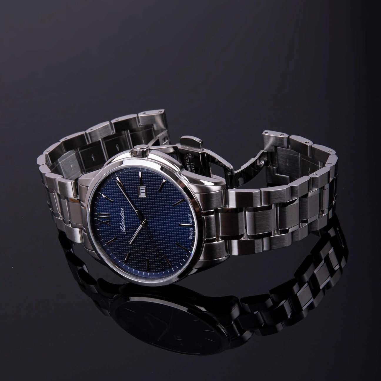 Часы Adriatica A1290.5165Q представляют собой идеальное сочетание элегантности и функциональности, разработанное для современных мужчин. Их стильный синий циферблат защищен сапфировым стекломСапфировое стеклоПрочный и надёжный материал из кристалла сапфира синтетического происхождения, характеризующийся особой твёрдостью и устойчивостью к царапинам и повреждениям., что придает дополнительную устойчивость к царапинам. Корпус из нержавеющей стали подчеркивает их изысканность и долговечность. Надежный кварцевый механизм с калибром ETA F06 (PreciDrive) гарантирует точность времени, а водозащита WR 50 (5 ATM) обеспечивает защиту от воды в различных условиях. Браслет из нержавеющей стали с застежкой «бабочка»Застёжка "бабочка"Такой вид застёжки дополняется предохранителями, помогающими избежать случайного раскрытия браслета. Обладают изящным исполнением. гармонично дополняет общий дизайн и обеспечивает комфортное ношение на запястье. Часы оснащены функцией отображения даты в окошке в положении 3 часа, что добавляет практичности в повседневной жизни. Люминесцентное покрытиеЛюминесцентное покрытиеПозволяет считывать показания времени в темноте. Производители наносят на стрелки, часовые индексы, безель или поверхность циферблата светонакопительный состав, дающий холодное свечение. на стрелках и метках обеспечивает отличную видимость в темноте.