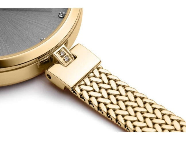 Изысканные женские часы Adriatica A3819.1147Q, произведенные в Швейцарии. Эти часы идеально подойдут для женщин, ценящих элегантность и стиль. Часы оснащены надежным кварцевым механизмом Ronda 763, обеспечивающим точность и долговечность. Корпус диаметром 34 мм и толщиной 7 мм выполнен из стали с PVDPVDУльтратонкое покрытие наносится в технике вакуумного напыления, сочетает в себе нитрид титана особой прочности со слоем золота или оксида хрома. Несёт в себе декоративную или защитную функцию. покрытием, что придает часам современный и утонченный вид. Серый циферблат, украшенный кристаллами, придает дополнительное сияние и изысканность. Минеральное стеклоМинеральное стеклоМинеральное стекло представляет собой искусственно выращенный минерал кварца. Такое стекло отличается особой устойчивостью к повреждениям и царапинам. Уступает по некоторым качествам сапфировому стеклу. защищает циферблат от повреждений, а водозащита уровня 30WR позволяет использовать часы в условиях легкой влажности. Стальной браслет с PVDPVDУльтратонкое покрытие наносится в технике вакуумного напыления, сочетает в себе нитрид титана особой прочности со слоем золота или оксида хрома. Несёт в себе декоративную или защитную функцию. покрытием золотистого цвета и раскладным замкомРаскладной замокДанный вариант застежки используется только на часах с металлическим браслетом. Отличительная особенность такого крепления в том, что длина браслета становится универсальной и вы можете самостоятельно отрегулировать нужный вам размер – застежка просто двигается по браслету часов. обеспечивает комфортное ношение и надежную фиксацию на запястье.