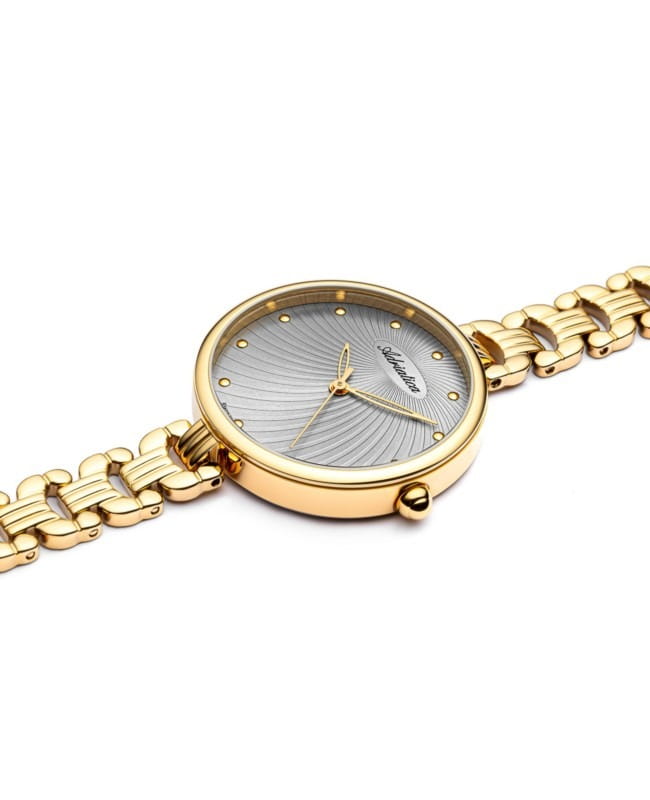Изысканные женские часы Adriatica A3822.1147Q, произведенные в Швейцарии. Эти часы идеально подойдут для женщин, ценящих элегантность и стиль. Часы оснащены надежным кварцевым механизмом Ronda 763, обеспечивающим точность и долговечность. Корпус диаметром 30 мм и толщиной 7 мм выполнен из стали с PVDPVDУльтратонкое покрытие наносится в технике вакуумного напыления, сочетает в себе нитрид титана особой прочности со слоем золота или оксида хрома. Несёт в себе декоративную или защитную функцию. покрытием, что придает часам современный и утонченный вид. Серый циферблат, украшенный точками, придает дополнительную изысканность. Минеральное стеклоМинеральное стеклоМинеральное стекло представляет собой искусственно выращенный минерал кварца. Такое стекло отличается особой устойчивостью к повреждениям и царапинам. Уступает по некоторым качествам сапфировому стеклу. защищает циферблат от повреждений, а водозащита уровня 30WR позволяет использовать часы в условиях легкой влажности. Стальной браслет с PVDPVDУльтратонкое покрытие наносится в технике вакуумного напыления, сочетает в себе нитрид титана особой прочности со слоем золота или оксида хрома. Несёт в себе декоративную или защитную функцию. покрытием золотистого цвета с ювелирной застежкой обеспечивает комфортное ношение и надежную фиксацию на запястье.