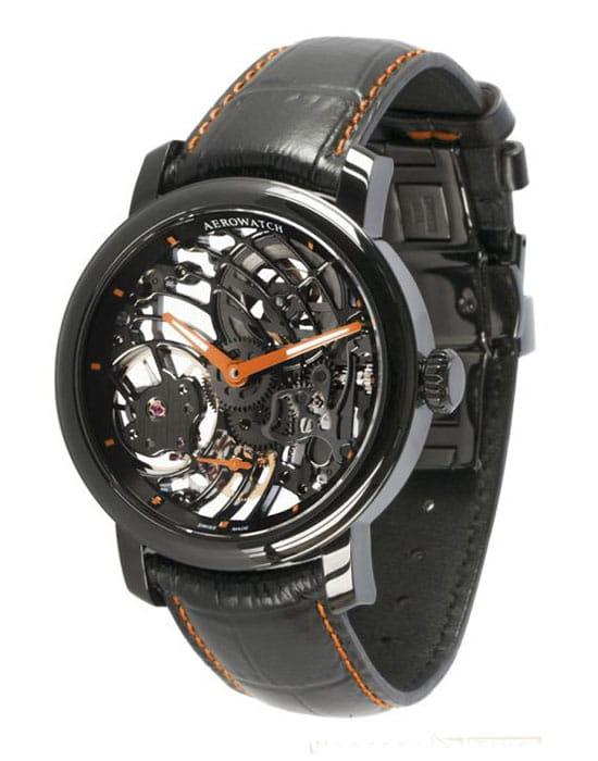 Мужские швейцарские механические часы-скелетоны Aerowatch 50931 NO08, механический механизм (автоматический калибр) с высокой точностью. Сапфировое стекло устойчивое к появлению царапин, обладающее высокой прозрачностью. Класс водозащиты: 50 метров, позволит защитить корпус от случайных брызг или капель дождя. Корпус часов изготовлен из стали, черного цвета.