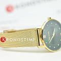 Amalys AMW-177 — женская модель с утончённым классическим дизайном, в которой сочетаются элегантность и практичность. Круглый корпус диаметром 33 мм выполнен из нержавеющей стали с PVD-покрытиемPVDУльтратонкое покрытие наносится в технике вакуумного напыления, сочетает в себе нитрид титана особой прочности со слоем золота или оксида хрома. Несёт в себе декоративную или защитную функцию., гармонирующим с браслетом шириной 16 мм в том же исполнении. Защитную функцию выполняет сапфировое стеклоСапфировое стеклоПрочный и надёжный материал из кристалла сапфира синтетического происхождения, характеризующийся особой твёрдостью и устойчивостью к царапинам и повреждениям., стойкое к царапинам и сохраняющее прозрачность. Механизм — кварцевый, обеспечивающий точность и стабильность хода. Браслет миланского плетения с PVD-покрытиемPVDУльтратонкое покрытие наносится в технике вакуумного напыления, сочетает в себе нитрид титана особой прочности со слоем золота или оксида хрома. Несёт в себе декоративную или защитную функцию. снабжён раскладным замкомРаскладной замокДанный вариант застежки используется только на часах с металлическим браслетом. Отличительная особенность такого крепления в том, что длина браслета становится универсальной и вы можете самостоятельно отрегулировать нужный вам размер – застежка просто двигается по браслету часов., который сочетает надёжность фиксации и удобство повседневного использования. Водозащита 3 ATM защищает часы от случайных брызг и дождя. Циферблат с римскими индексами и изящными стрелками подчёркивает классическую эстетику модели, делая её уместной как в повседневных образах, так и в торжественной обстановке.