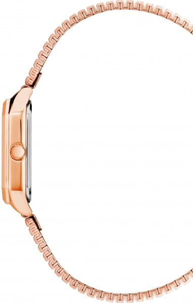 Женские американские наручные часы Anne Klein Stretch 3980PMRG, кварцевый механизм с высокой точностью. Класс водозащиты: 30 метров, позволит защитить корпус от случайных брызг или капель дождя. Минеральное стеклоМинеральное стеклоМинеральное стекло представляет собой искусственно выращенный минерал кварца. Такое стекло отличается особой устойчивостью к повреждениям и царапинам. Уступает по некоторым качествам сапфировому стеклу. устойчивое к мелким механическим повреждениям. Корпус часов изготовлен из стали с PVD-покрытиемPVDУльтратонкое покрытие наносится в технике вакуумного напыления, сочетает в себе нитрид титана особой прочности со слоем золота или оксида хрома. Несёт в себе декоративную или защитную функцию.. Стальной браслет на раскладной застёжкеРаскладная застёжкаТакой тип застёжки используется только на браслетах из металла. Она никогда не раскрывается полностью, происходит разделение на 2 и более частей. Раскладывающая застёжка снизит вероятность потери часов к минимуму. с PVD-покрытиемPVDУльтратонкое покрытие наносится в технике вакуумного напыления, сочетает в себе нитрид титана особой прочности со слоем золота или оксида хрома. Несёт в себе декоративную или защитную функцию.. Метки в виде штрихов и римских цифр. Рифленая заводная головка. Браслет выполнен в форме резинки.