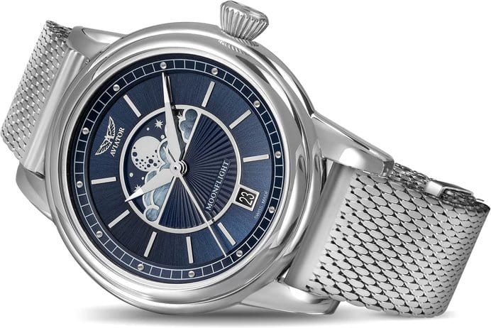 Aviator V.1.33.0.255.5 “Douglas Moonflight” — элегантный дамский швейцарский Moonphase с утончённой авиационной эстетикой. Корпус 36 мм из нержавеющей стали с полированной отделкой обладает компактными пропорциями и удобным литым профилем.