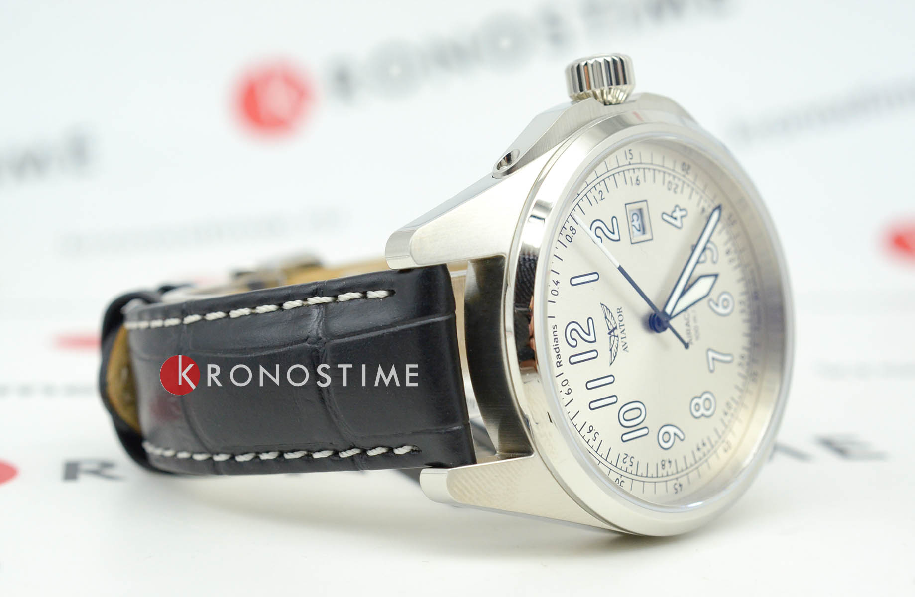 Aviator V.1.38.0.327.4 “Airacobra 43 Type A” — надёжные швейцарские пилотские часы с насыщенным функционалом и строгим авиационным дизайном. Корпус диаметром 42,8 мм выполнен из нержавеющей стали.