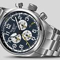 Aviator Airacobra P45 Chrono V.2.25.0.170.5 — швейцарские часы в духе пилотских инструментов, объединяющий точность, удобство и лаконичный дизайн. Диаметр корпуса — 45 мм, выполнен из нержавеющей стали 316L, что подчёркивает техническую надёжность в образе часов. Циферблат оформлен в классическом aviator-стиле: крупные арабские цифры, широкие стрелки и чёткое деление минут позволяют считывать время мгновенно. Стрелки и метки покрыты люминесцентным покрытиемЛюминесцентное покрытиеПозволяет считывать показания времени в темноте. Производители наносят на стрелки, часовые индексы, безель или поверхность циферблата светонакопительный состав, дающий холодное свечение. Superluminova для отличной читаемости при слабом освещении. Циферблат защищён стойким сапфировым стекломСапфировое стеклоПрочный и надёжный материал из кристалла сапфира синтетического происхождения, характеризующийся особой твёрдостью и устойчивостью к царапинам и повреждениям. с антибликовым покрытиемАнтибликовое покрытиеСлой оксида металла в 0,13-0,3 микрон, благодаря которому стекло часов не бликует и не отражает свет. Антибликовое покрытие уменьшает отражение света в 10 раз, обеспечивая отличную читаемость показателей циферблата.. У модели присутствуют дата и точный откидной механизм завинчивающейся заводной головки и задней крышки, обеспечивающий надёжную водозащиту до 100 м и защиту от ударов. Внутри установлен швейцарский кварцевый механизм, который обеспечивает функции хронографаХронографФункция позволяет измерять отрезки времени с особой точностью: часы, минуты, секунды. Верным признаком хронографа является наличие на циферблате 3 дополнительных окошек-счётчиков.. Функции добавить (ADD) и разделить (SPLIT). Часы комплектуются браслетом из нержавеющей стали с удобной раскладной застёжкойРаскладная застёжкаТакой тип застёжки используется только на браслетах из металла. Она никогда не раскрывается полностью, происходит разделение на 2 и более частей. Раскладывающая застёжка снизит вероятность потери часов к минимуму., обеспечивающей надёжную фиксацию и комфорт при ежедневной носке. Эти изысканные часы так же обладают функциями тахиметраТахиметрРазмеченная шкала, располагается на ободке или безеле часов. Тахиметр позволяет рассчитать скорость на определённом участке пути, расстояние измеряется в километрах или милях., секундомераСекундомерСекундоме́р — прибор, способный измерять интервалы времени с точностью до долей секунды. и телеметра. Airacobra — это практичный и стильный инструмент для путешествий и активной повседневности, объединяющий авиационную эстетику, точный механизм и удобство.