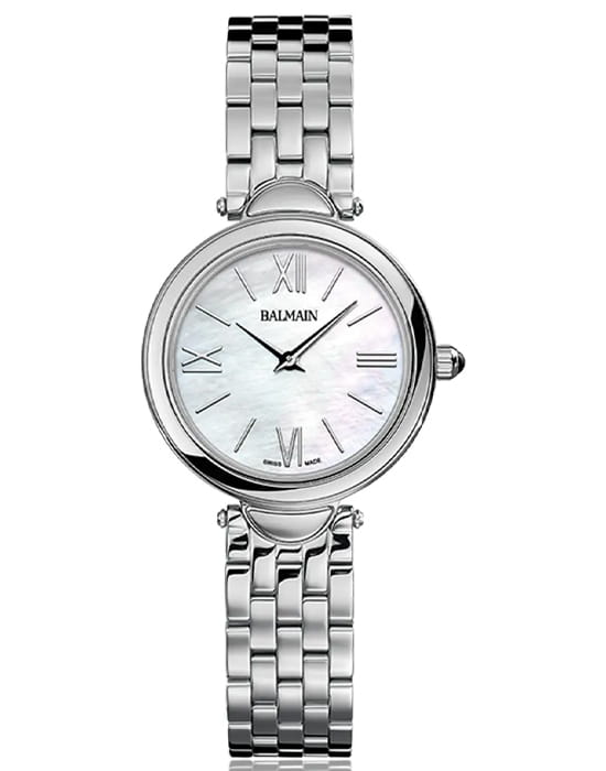 Женские часы Balmain Haute Elegance B8151.33.82 кварцевый механизм с высокой точностью. Сапфировое стеклоСапфировое стеклоПрочный и надёжный материал из кристалла сапфира синтетического происхождения, характеризующийся особой твёрдостью и устойчивостью к царапинам и повреждениям. устойчивое к появлению царапин, обладающее высокой прозрачностью. Корпус изготовлен из нержавеющей стали. Класс водозащиты: 50 метров, позволит защитить корпус от случайных брызг или капель дождя. Стальной браслет на застёжке «бабочка» с кнопкамиЗастёжка "бабочка"Такой вид застёжки дополняется предохранителями, помогающими избежать случайного раскрытия браслета. Обладают изящным исполнением. .