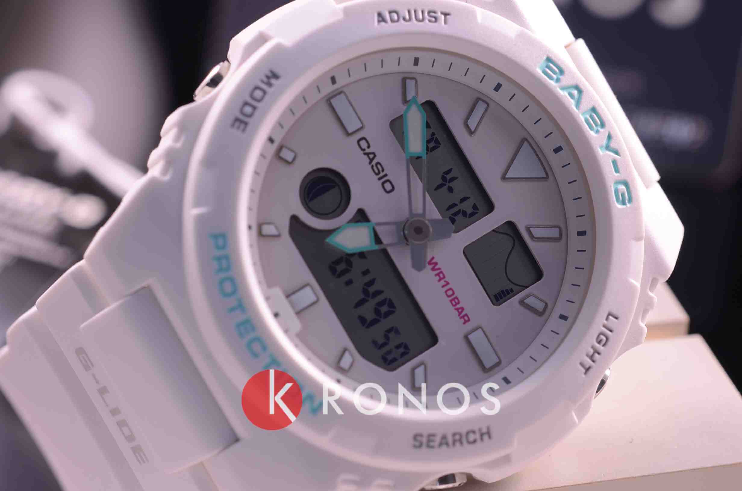 Женские японские часы Casio Baby-G BAX-100-7AER из коллекции Baby-G выпущены специально для любительниц сёрфинга и больших волн.