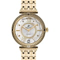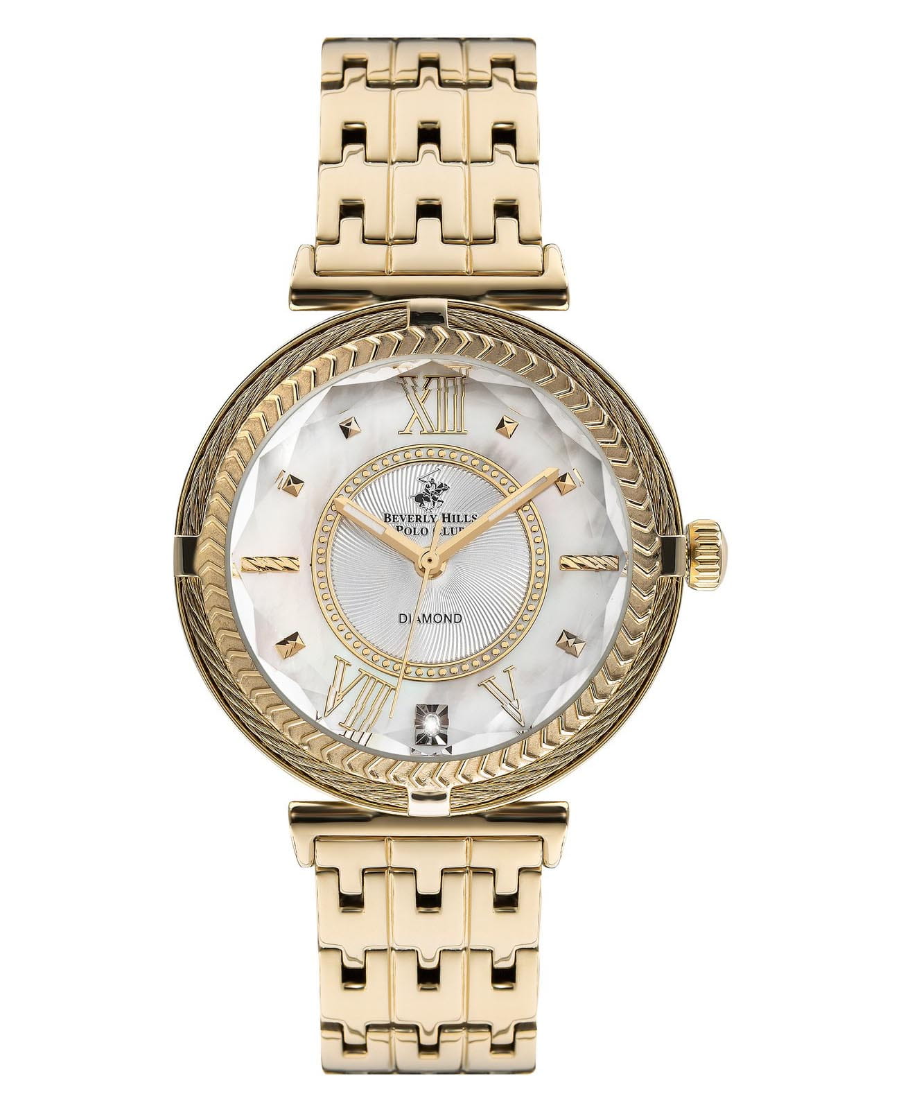 Часы Beverly Hills Polo Club BP3222X.120 — элегантная женская модель, сочетающая стиль и функциональность. Корпус диаметром 35 мм выполнен из нержавеющей стали с PVD-покрытиемPVDУльтратонкое покрытие наносится в технике вакуумного напыления, сочетает в себе нитрид титана особой прочности со слоем золота или оксида хрома. Несёт в себе декоративную или защитную функцию. золотого цвета. Белый циферблат с аналоговой индикацией защищён минеральным стекломМинеральное стеклоМинеральное стекло представляет собой искусственно выращенный минерал кварца. Такое стекло отличается особой устойчивостью к повреждениям и царапинам. Уступает по некоторым качествам сапфировому стеклу., устойчивым к царапинам.