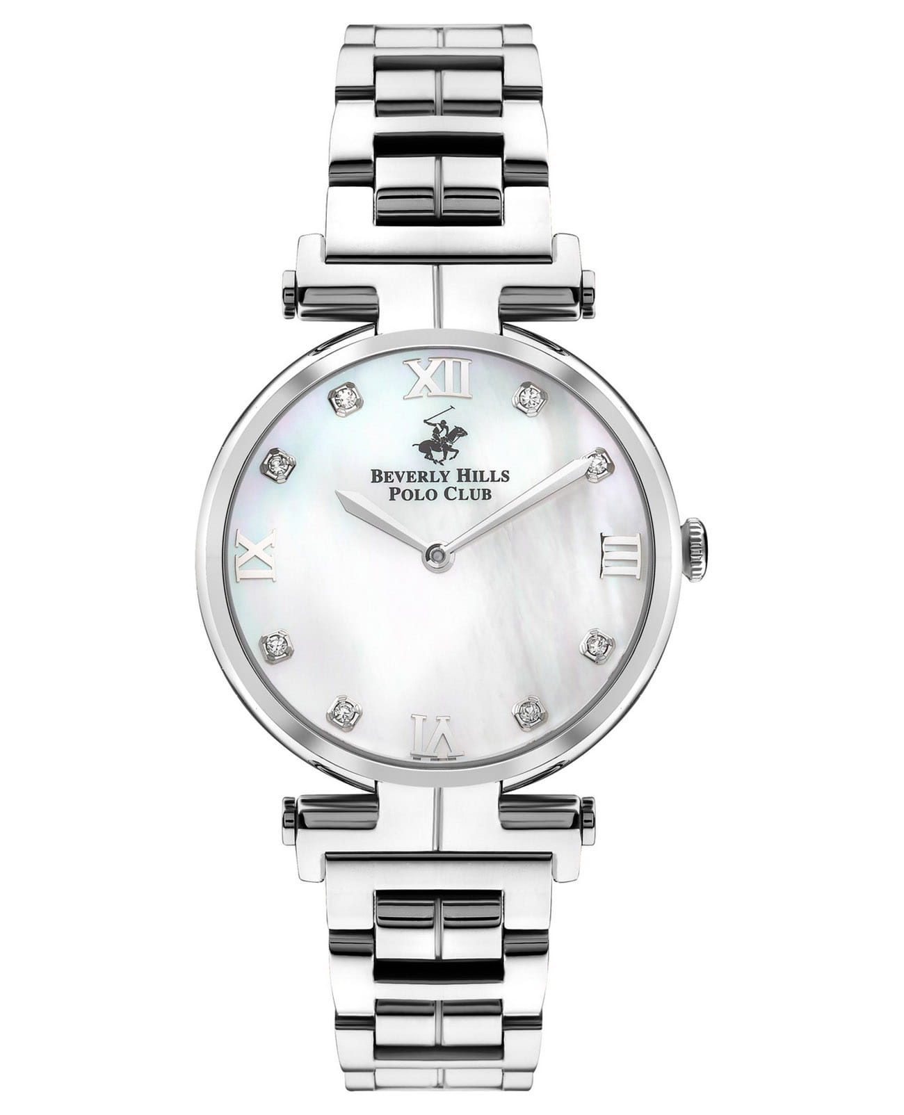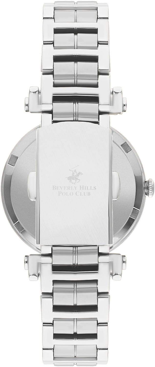 Американские женские часы с минеральным стекломМинеральное стеклоМинеральное стекло представляет собой искусственно выращенный минерал кварца. Такое стекло отличается особой устойчивостью к повреждениям и царапинам. Уступает по некоторым качествам сапфировому стеклу. Beverly Hills Polo Club BP3382X.320, кварцевый механизм с высокой точностью. Корпус часов изготовлены из нержавеющей стали. Циферблат инкрустирован кристаллами.Класс водозащиты: 50 метров, позволит защитить корпус от случайных брызг или капель дождя. Стальной браслет на раскладной застёжкеРаскладная застёжкаТакой тип застёжки используется только на браслетах из металла. Она никогда не раскрывается полностью, происходит разделение на 2 и более частей. Раскладывающая застёжка снизит вероятность потери часов к минимуму..