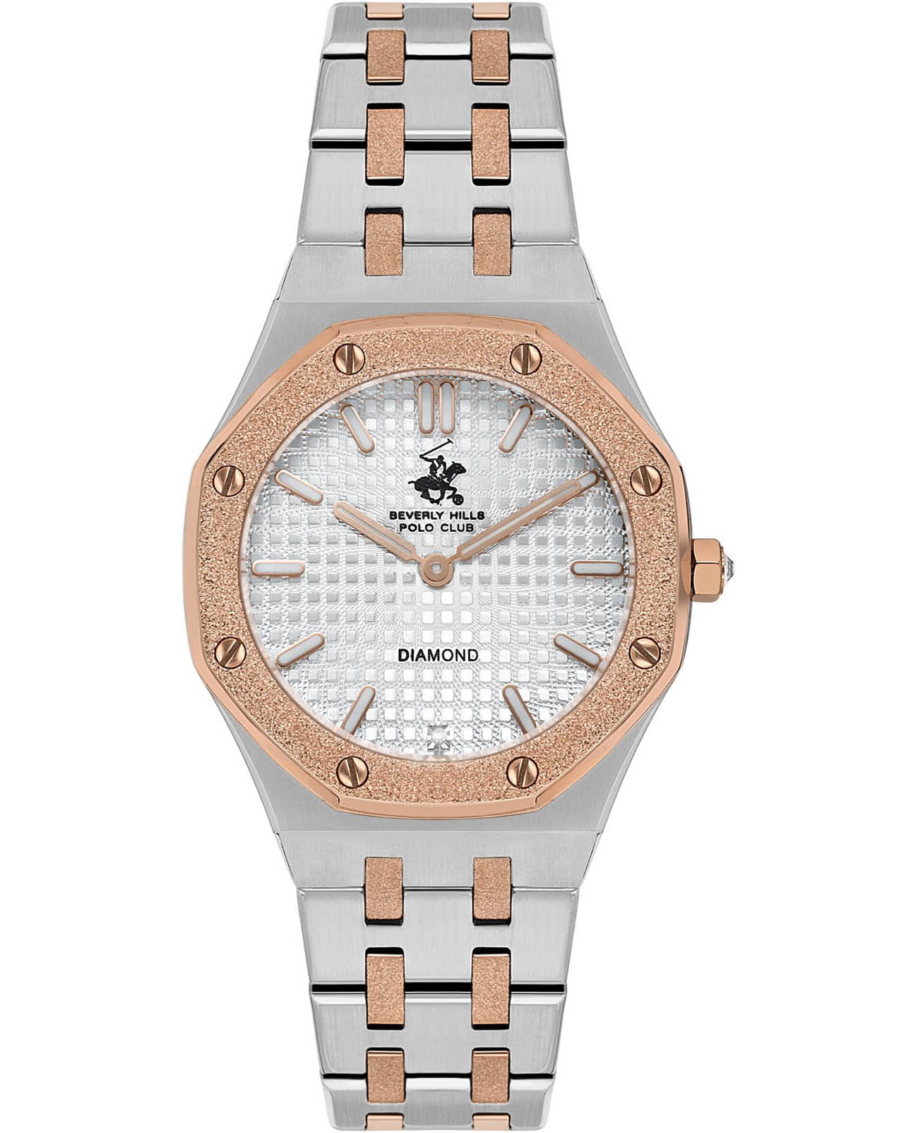 Женские наручные часы Beverly Hills Polo Club Quartz BP3631X.530 с надёжным кварцевым механизмом. Минеральное стеклоМинеральное стеклоМинеральное стекло представляет собой искусственно выращенный минерал кварца. Такое стекло отличается особой устойчивостью к повреждениям и царапинам. Уступает по некоторым качествам сапфировому стеклу. устойчивое к мелким механическим повреждениям. Корпус часов изготовлен из стали. БезельБезельВнешний ободок, закрепляющий стекло. В спортивных часах так называется поворотное кольцо с делениями на циферблате, выполняет роль таймера – замеряет отрезки времени на шкале. Неподвижный безель – элемент декора. Однонаправленно вращающийся безель на дайверских часах позволяет фиксировать моменты погружения и выныривания на поверхность. с IP-покрытиемIP-покрытиеМетод ионного напыления. Демонстрирует повышенную устойчивость к истиранию, окислению и химическим веществам. Под воздействием высокого давления и температуры около 1500°C молекулы металла надёжно соединяются с частицами корпуса часов.. Класс водозащиты: 50 метров, позволит защитить корпус от случайных брызг или капель дождя. Стальной браслет с частичным IP-покрытиемIP-покрытиеМетод ионного напыления. Демонстрирует повышенную устойчивость к истиранию, окислению и химическим веществам. Под воздействием высокого давления и температуры около 1500°C молекулы металла надёжно соединяются с частицами корпуса часов. на раскладной застёжкеРаскладная застёжкаТакой тип застёжки используется только на браслетах из металла. Она никогда не раскрывается полностью, происходит разделение на 2 и более частей. Раскладывающая застёжка снизит вероятность потери часов к минимуму..