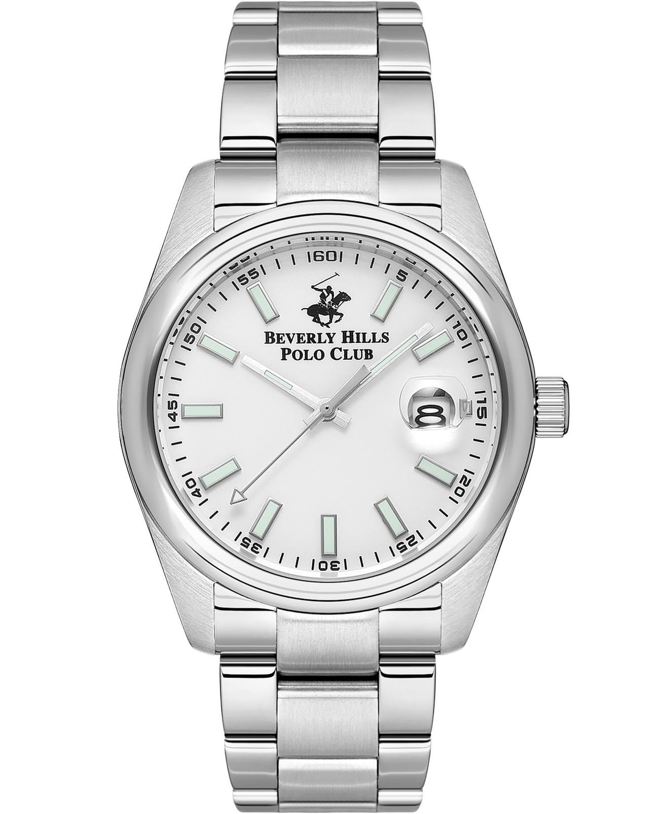 Мужские часы Beverly Hills Polo BP3598X.330 с надёжным кварцевым механизмом. Минеральное стеклоМинеральное стеклоМинеральное стекло представляет собой искусственно выращенный минерал кварца. Такое стекло отличается особой устойчивостью к повреждениям и царапинам. Уступает по некоторым качествам сапфировому стеклу. устойчивое к появлению царапин, обладающее высокой прозрачностью. Класс водозащиты: 50 метров, позволит защитить корпус от случайных брызг или капель дождя. Корпус и браслет часов изготовлены из нержавеющей стали. Стальной браслет на раскладной застёжкеРаскладная застёжкаТакой тип застёжки используется только на браслетах из металла. Она никогда не раскрывается полностью, происходит разделение на 2 и более частей. Раскладывающая застёжка снизит вероятность потери часов к минимуму.. Окошко дня недели находится в положении 3 часа. Стрелки и метки с люминесцентным покрытиемЛюминесцентное покрытиеПозволяет считывать показания времени в темноте. Производители наносят на стрелки, часовые индексы, безель или поверхность циферблата светонакопительный состав, дающий холодное свечение..