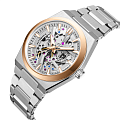 С водозащитой до 100 метров, эти часы становятся вашим верным спутником в любых водных приключениях: будь то плавание, ныряние или интенсивные спортивные тренировки. Комфортный браслет из нержавеющей стали с раскладной застёжкой обеспечивает удобное ношение и надёжную фиксацию на запястье. БезельБезельВнешний ободок, закрепляющий стекло. В спортивных часах так называется поворотное кольцо с делениями на циферблате, выполняет роль таймера – замеряет отрезки времени на шкале. Неподвижный безель – элемент декора. Однонаправленно вращающийся безель на дайверских часах позволяет фиксировать моменты погружения и выныривания на поверхность. с IP-покрытиемIP-покрытиеМетод ионного напыления. Демонстрирует повышенную устойчивость к истиранию, окислению и химическим веществам. Под воздействием высокого давления и температуры около 1500°C молекулы металла надёжно соединяются с частицами корпуса часов..