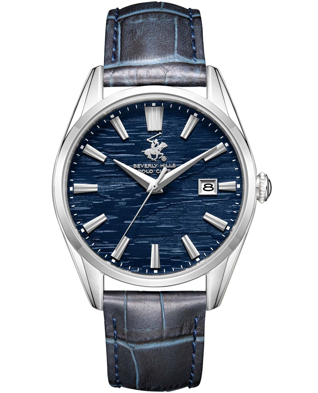 BEVERLY HILLS POLO CLUB BP3811X.399 — стильные мужские часы, сочетающие спортивную динамику и функциональность. Крупный корпус выполнен из нержавеющей стали серебристого цвета, диаметром 40 мм, гармонично дополнен кожаным ремешком на застёжке-бабочке с кнопкамиЗастёжка "бабочка"Такой вид застёжки дополняется предохранителями, помогающими избежать случайного раскрытия браслета. Обладают изящным исполнением. . Минеральное стеклоМинеральное стеклоМинеральное стекло представляет собой искусственно выращенный минерал кварца. Такое стекло отличается особой устойчивостью к повреждениям и царапинам. Уступает по некоторым качествам сапфировому стеклу. с сапфировым покрытием защищает циферблат от царапин, а кварцевый механизм обеспечивает высокую точность. Благодаря своей универсальной эстетике эти часы уместны и в деловой среде, и в повседневном образе. Окошко даты находится в положении 3 часа. Идеальный выбор для тех, кто ценит элегантный дизайн и качество. Водозащита до 50 метров позволит защитить корпус от случайных брызг или капель дождя.
