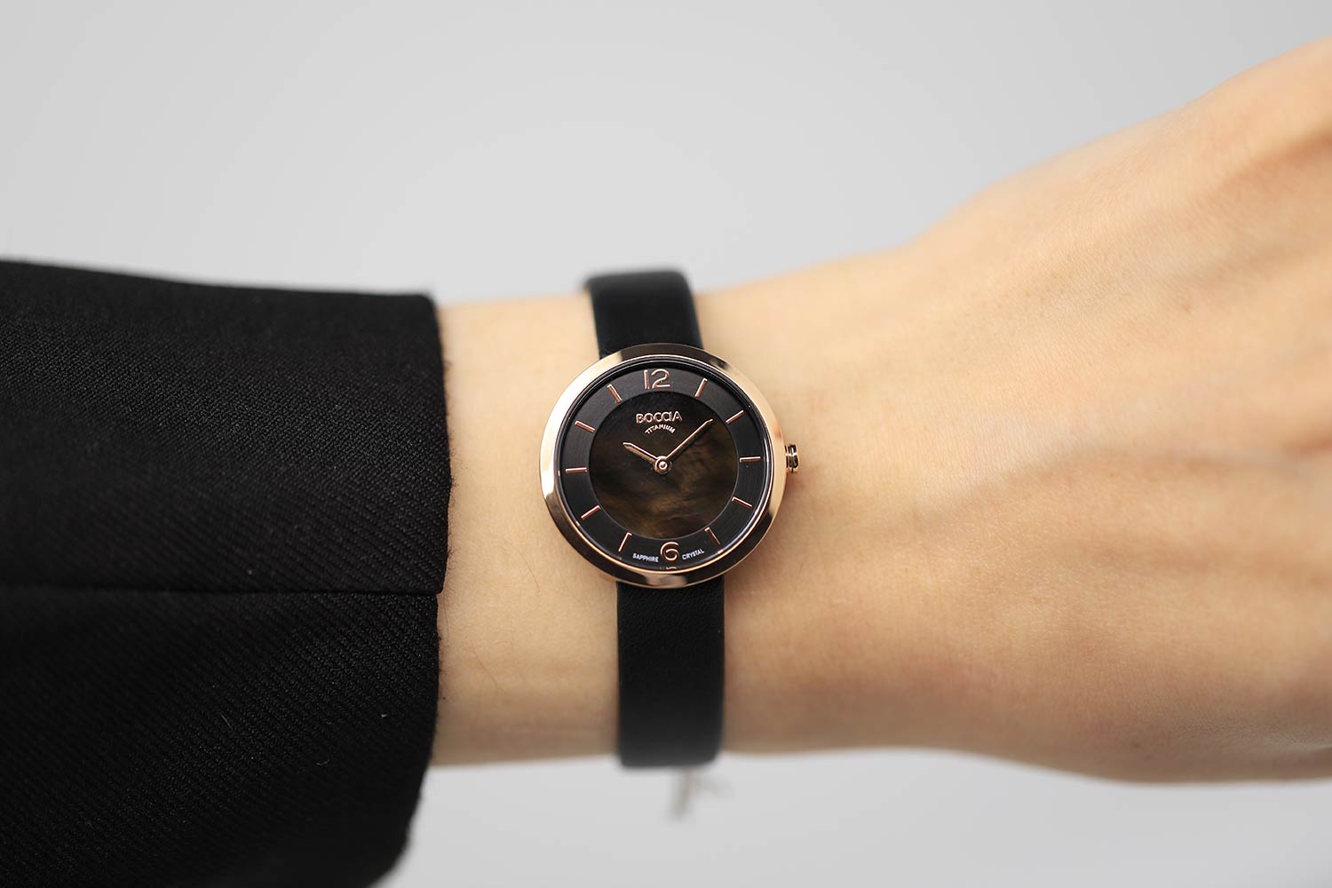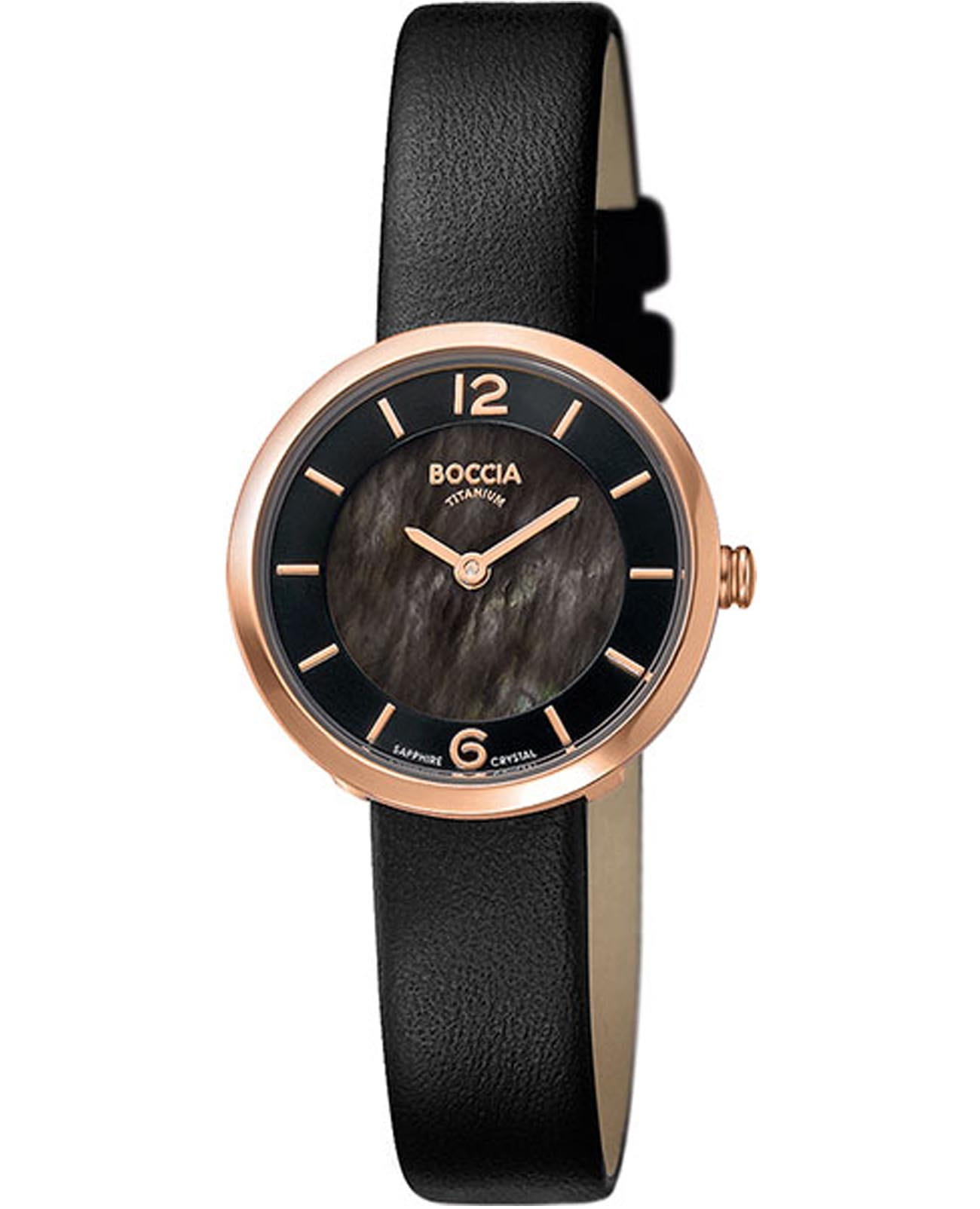 Женские наручные часы Boccia Titanium 3266-03 с надёжным кварцевым механизмом. Корпус часов изготовлен из нержавеющей стали с PVD-покрытиемPVDУльтратонкое покрытие наносится в технике вакуумного напыления, сочетает в себе нитрид титана особой прочности со слоем золота или оксида хрома. Несёт в себе декоративную или защитную функцию.. Кожаный ремешок на стандартной застёжке. Сапфировое стеклоСапфировое стеклоПрочный и надёжный материал из кристалла сапфира синтетического происхождения, характеризующийся особой твёрдостью и устойчивостью к царапинам и повреждениям. устойчивое к мелким механическим повреждениям. Класс водозащиты: 30 метров, позволит защитить корпус от случайных брызг или капель дождя.