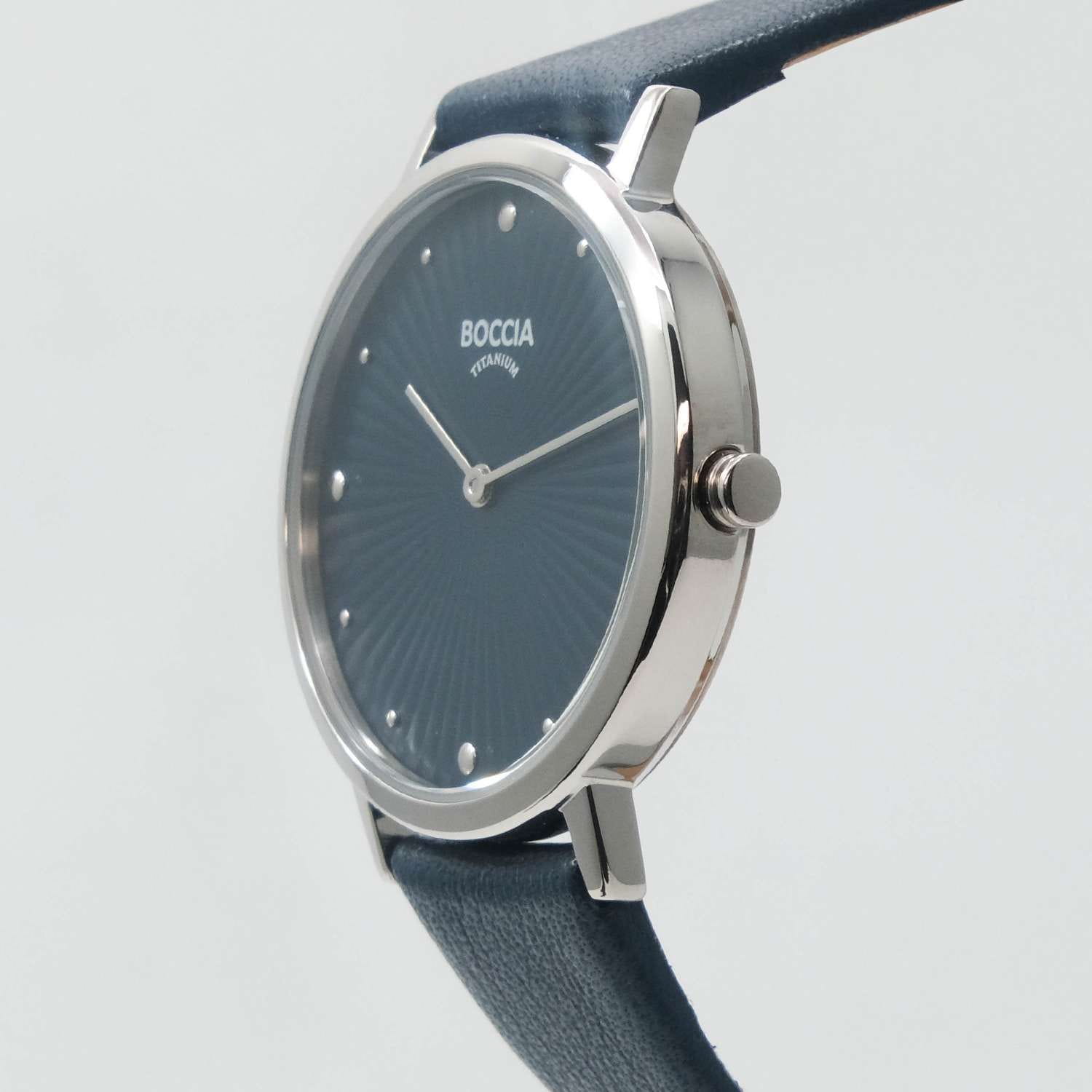 Элегантные женские часы Boccia 3365-02 станут неотъемлемой частью вашего повседневного стиля. Эти часы оборудованы надежным кварцевым механизмом Miyota GL22, обеспечивающим высокую точность и бесперебойную работу. Центральные часовая и минутная стрелки изящно выделяются на стильном синим циферблате, создавая гармоничный и современный образ. Корпус часов выполнен из суперлегкого титана, что делает их не только прочными, но и комфортными в ношении. Круглый корпус диаметром 34 мм придаёт часам классический и универсальный вид. Синий кожаный ремешок с традиционной застежкой идеально дополняет общий дизайн, добавляя яркий акцент. Прочное минеральное стеклоМинеральное стеклоМинеральное стекло представляет собой искусственно выращенный минерал кварца. Такое стекло отличается особой устойчивостью к повреждениям и царапинам. Уступает по некоторым качествам сапфировому стеклу. защищает циферблат от мелких механических повреждений, обеспечивая долговечность и сохранение первоначального внешнего вида. Водостойкость уровня WR 50 позволяет не беспокоиться о попадании влаги при мытье рук или в дождливую погоду.