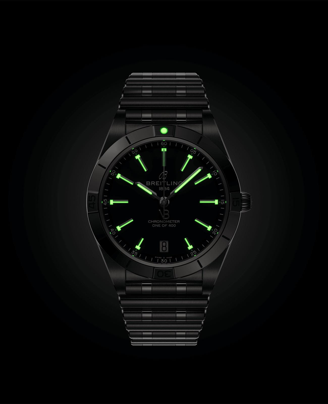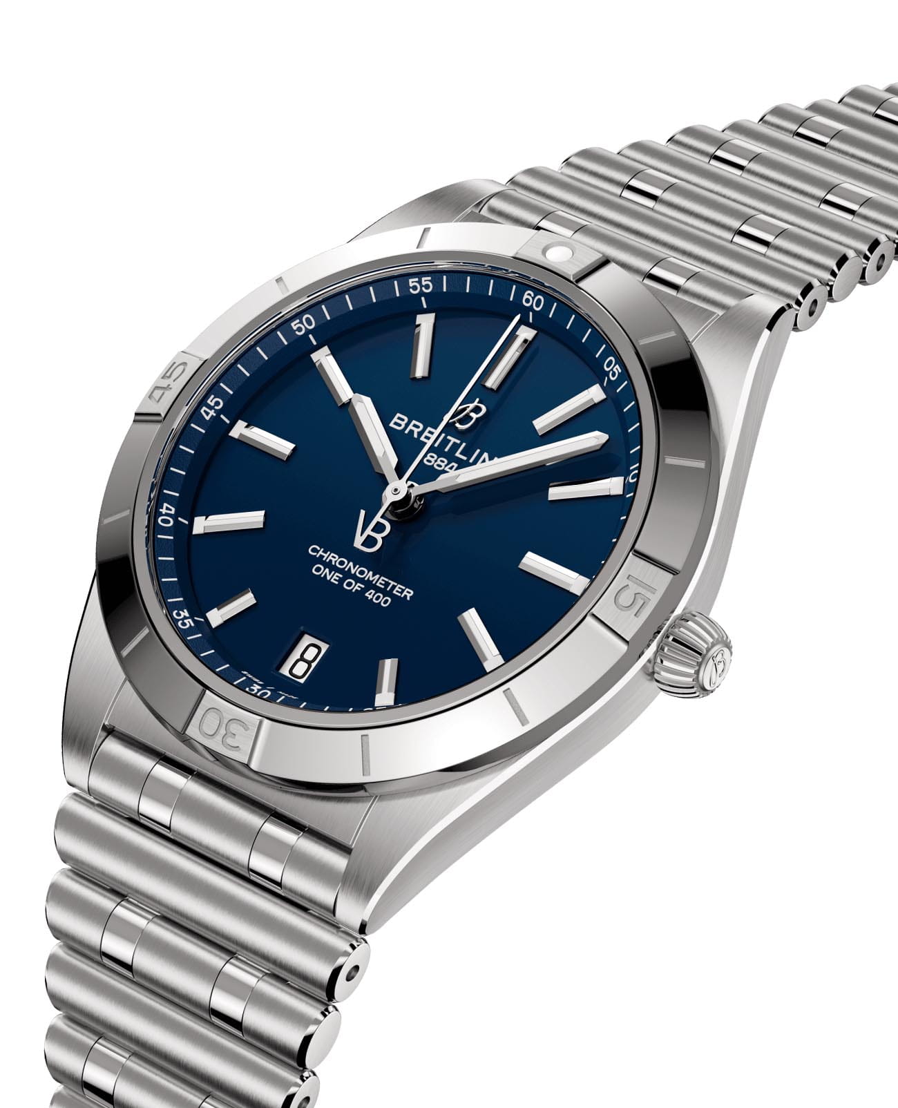 Женские швейцарские часы Breitling Chronomat Automatic 36 Victoria Beckham A103801A1C1A1 с надёжным автоматическим механизмом, выпущенные лимитированной серией всего из 1500 экземпляров в сотрудничестве с модным домом Victoria Beckham. Сапфировое стеклоСапфировое стеклоПрочный и надёжный материал из кристалла сапфира синтетического происхождения, характеризующийся особой твёрдостью и устойчивостью к царапинам и повреждениям. устойчивое к мелким механическим повреждениям. Корпус и браслет часов изготовлены из нержавеющей стали. Стальной браслет на застёжке-бабочке с кнопкамиЗастёжка "бабочка"Такой вид застёжки дополняется предохранителями, помогающими избежать случайного раскрытия браслета. Обладают изящным исполнением. . Стрелки и метки с люминесцентным покрытиемЛюминесцентное покрытиеПозволяет считывать показания времени в темноте. Производители наносят на стрелки, часовые индексы, безель или поверхность циферблата светонакопительный состав, дающий холодное свечение.. Класс водозащиты: 100 метров, позволит плавать, нырять и заниматься другими водными видами спорта. Окошко даты находится в положении 6 часов.