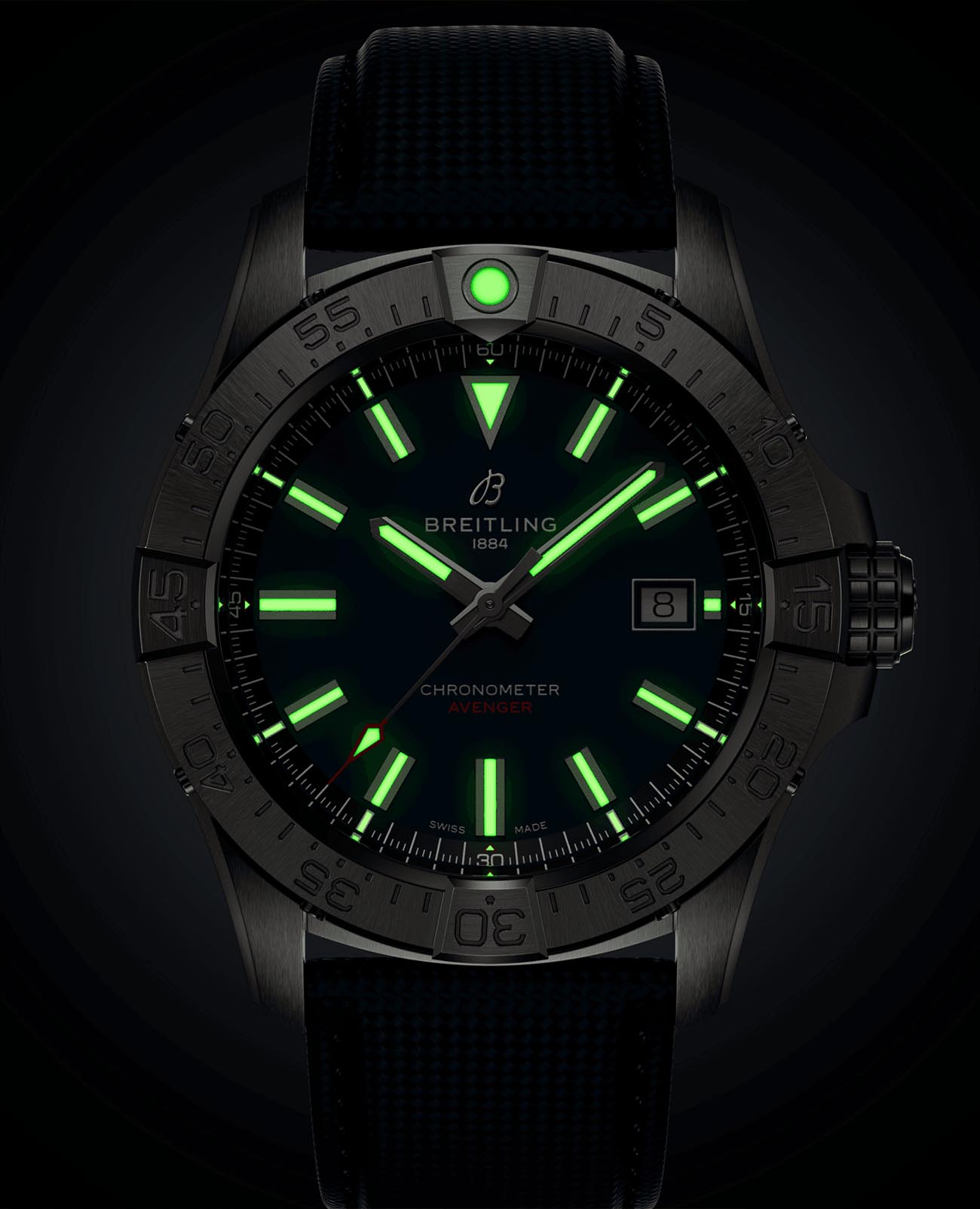Мужские наручные часы Breitling Avenger Automatic 42 A17328101C1X1 с надёжным автоматическим механизмом. Сапфировое стеклоСапфировое стеклоПрочный и надёжный материал из кристалла сапфира синтетического происхождения, характеризующийся особой твёрдостью и устойчивостью к царапинам и повреждениям. повышенной прозрачности, устойчивое к мелким механическим повреждениям. Вращающийся безельБезельВнешний ободок, закрепляющий стекло. В спортивных часах так называется поворотное кольцо с делениями на циферблате, выполняет роль таймера – замеряет отрезки времени на шкале. Неподвижный безель – элемент декора. Однонаправленно вращающийся безель на дайверских часах позволяет фиксировать моменты погружения и выныривания на поверхность.. Окошко даты находится в положении 3 часа. Стрелки и метки с люминесцентным покрытиемЛюминесцентное покрытиеПозволяет считывать показания времени в темноте. Производители наносят на стрелки, часовые индексы, безель или поверхность циферблата светонакопительный состав, дающий холодное свечение.. Кожаный ремешок на стандартной застёжке. Класс водозащиты: 300 метров, позволит плавать, нырять и заниматься другими водными видами спорта.