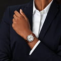 Покупатель может выбрать одну из понравившихся ему вариаций с элегантным циферблатом серебристого, синего, медного цвета или белым перламутровым циферблатом с бриллиантовой инкрустацией.