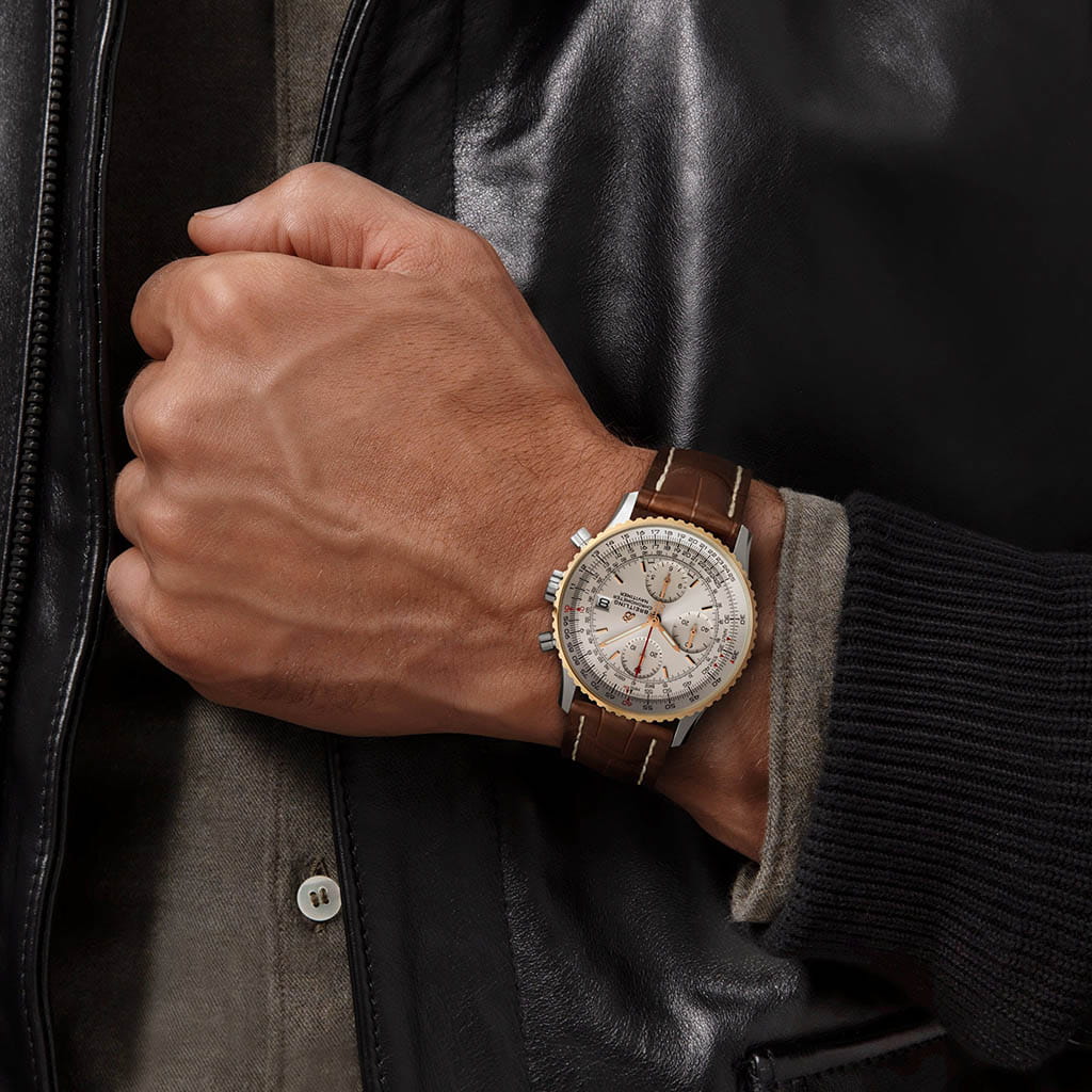 Модель с циферблатом ртутно-серебристого цвета дополнена коричневым ремешком из кожи аллигатора. «Сердце» часов – механизм Breitling Caliber 13, сертифицированный Швейцарским институтом официального тестирования хронометров (COSC) и обеспечивающий запас хода около 48 часов.
