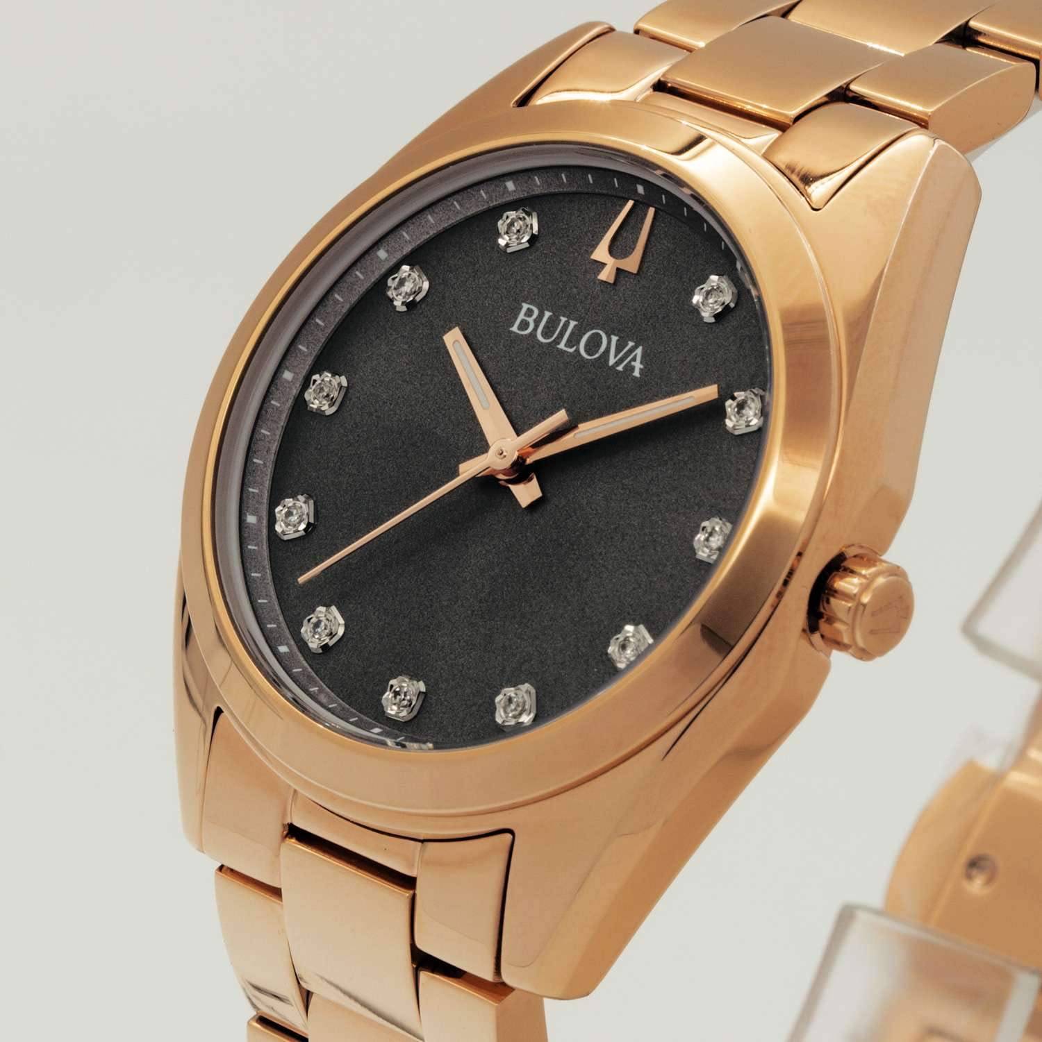 Женские кварцевые часы Bulova Surveyor 97P156 – отражающий идеальное сочетание современного дизайна, надёжности и функциональности. Элегантный облик станет превосходным завершением образа, наделив его индивидуальным характером. Корпус из нержавеющей стали с IP-покрытиемIP-покрытиеМетод ионного напыления. Демонстрирует повышенную устойчивость к истиранию, окислению и химическим веществам. Под воздействием высокого давления и температуры около 1500°C молекулы металла надёжно соединяются с частицами корпуса часов. цвета розового золота, диаметром 31 мм идеально сбалансирован и элегантен. Минеральное стеклоМинеральное стеклоМинеральное стекло представляет собой искусственно выращенный минерал кварца. Такое стекло отличается особой устойчивостью к повреждениям и царапинам. Уступает по некоторым качествам сапфировому стеклу. защищает циферблат от царапин и устойчивое к мелким механическим повреждениям. Циферблат украшен бриллиантами. Стальной браслет с IP-покрытиемIP-покрытиеМетод ионного напыления. Демонстрирует повышенную устойчивость к истиранию, окислению и химическим веществам. Под воздействием высокого давления и температуры около 1500°C молекулы металла надёжно соединяются с частицами корпуса часов. на застёжке-бабочке с кнопкамиЗастёжка "бабочка"Такой вид застёжки дополняется предохранителями, помогающими избежать случайного раскрытия браслета. Обладают изящным исполнением. обеспечивает комфортное ношение. Стрелки с люминесцентным покрытиемЛюминесцентное покрытиеПозволяет считывать показания времени в темноте. Производители наносят на стрелки, часовые индексы, безель или поверхность циферблата светонакопительный состав, дающий холодное свечение.. Водозащита 30 метров позволит защитить корпус от случайных брызг или капель дождя. Эта модель – отличный выбор для тех, кто ищет сочетание стиля, качества и функциональности. Часы станут не только полезным аксессуаром, но и выразительным элементом вашего имиджа.
