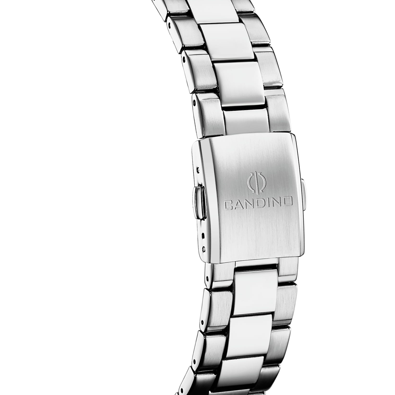 Мужские кварцевые часы Candino сочетают стильный дизайн и надёжность. Корпус выполнен из стали и защищён сапфировым стекломСапфировое стеклоПрочный и надёжный материал из кристалла сапфира синтетического происхождения, характеризующийся особой твёрдостью и устойчивостью к царапинам и повреждениям., устойчивым к царапинам. Циферблат чёрного цвета оформлен метками, стрелки покрыты люминесцентным покрытиемЛюминесцентное покрытиеПозволяет считывать показания времени в темноте. Производители наносят на стрелки, часовые индексы, безель или поверхность циферблата светонакопительный состав, дающий холодное свечение., что обеспечивает хорошую читаемость в темноте. Часы отображают часы, минуты, секунды и дату. Браслет стальной, фиксируется на раскладной застёжкеРаскладная застёжкаТакой тип застёжки используется только на браслетах из металла. Она никогда не раскрывается полностью, происходит разделение на 2 и более частей. Раскладывающая застёжка снизит вероятность потери часов к минимуму.. Водонепроницаемость составляет 100 WR, что позволяет использовать часы для плавания, ныряния и других водных видов спорта.