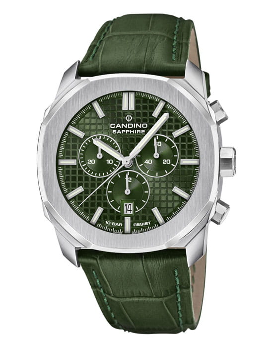 Швейцарские мужские наручные часы-хронографХронографФункция позволяет измерять отрезки времени с особой точностью: часы, минуты, секунды. Верным признаком хронографа является наличие на циферблате 3 дополнительных окошек-счётчиков. Candino Chronos Carree C4747/3, кварцевый механизм с высокой точностью. Сапфировое стеклоСапфировое стеклоПрочный и надёжный материал из кристалла сапфира синтетического происхождения, характеризующийся особой твёрдостью и устойчивостью к царапинам и повреждениям. устойчивое к появлению царапин, обладающее высокой прозрачностью. Часы, минуты, секунды. Индикация даты. Класс водозащиты: 100 метров, позволит плавать, нырять и заниматься другими водными видами спорта. Корпус часов изготовлен из нержавеющей стали. Стрелки и метки с люминесцентным покрытиемЛюминесцентное покрытиеПозволяет считывать показания времени в темноте. Производители наносят на стрелки, часовые индексы, безель или поверхность циферблата светонакопительный состав, дающий холодное свечение..
