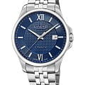 Мужские швейцарские механические часы с сапфировым стекломСапфировое стеклоПрочный и надёжный материал из кристалла сапфира синтетического происхождения, характеризующийся особой твёрдостью и устойчивостью к царапинам и повреждениям. Candino Gents Classic C4768/2. Класс водозащиты: 50 метров, позволит защитить корпус от случайных брызг или капель дождя. Корпус и браслет часов изготовлены из нержавеющей стали. Стальной браслет на раскладной застёжкеРаскладная застёжкаТакой тип застёжки используется только на браслетах из металла. Она никогда не раскрывается полностью, происходит разделение на 2 и более частей. Раскладывающая застёжка снизит вероятность потери часов к минимуму.. Стрелки с люминесцентным покрытиемЛюминесцентное покрытиеПозволяет считывать показания времени в темноте. Производители наносят на стрелки, часовые индексы, безель или поверхность циферблата светонакопительный состав, дающий холодное свечение.. Окошко даты находится в положении 3 часа. Класс водозащиты: 50 метров, позволит защитить корпус от случайных брызг или капель дождя.