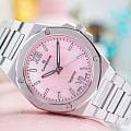 Женские кварцевые часы Candino из коллекции Lady Elegance — это стильный аксессуар, сочетающий швейцарское качество и элегантный дизайн. Корпус диаметром 33,5 мм и толщиной 8 мм выполнен из нержавеющей стали 316L. Циферблат розового цвета оформлен индексами и стрелками. Циферблат защищён сапфировым стекломСапфировое стеклоПрочный и надёжный материал из кристалла сапфира синтетического происхождения, характеризующийся особой твёрдостью и устойчивостью к царапинам и повреждениям., устойчивым к царапинам. Механизм — кварцевый, произведённый в Швейцарии. Часы оснащены стальным браслетом с раскладной застёжкойРаскладная застёжкаТакой тип застёжки используется только на браслетах из металла. Она никогда не раскрывается полностью, происходит разделение на 2 и более частей. Раскладывающая застёжка снизит вероятность потери часов к минимуму.. Водонепроницаемость 50 м позволяет использовать часы в повседневных условиях. Гарантия — 2 года. Идеальный выбор для тех, кто ценит точность, красоту и надёжность.