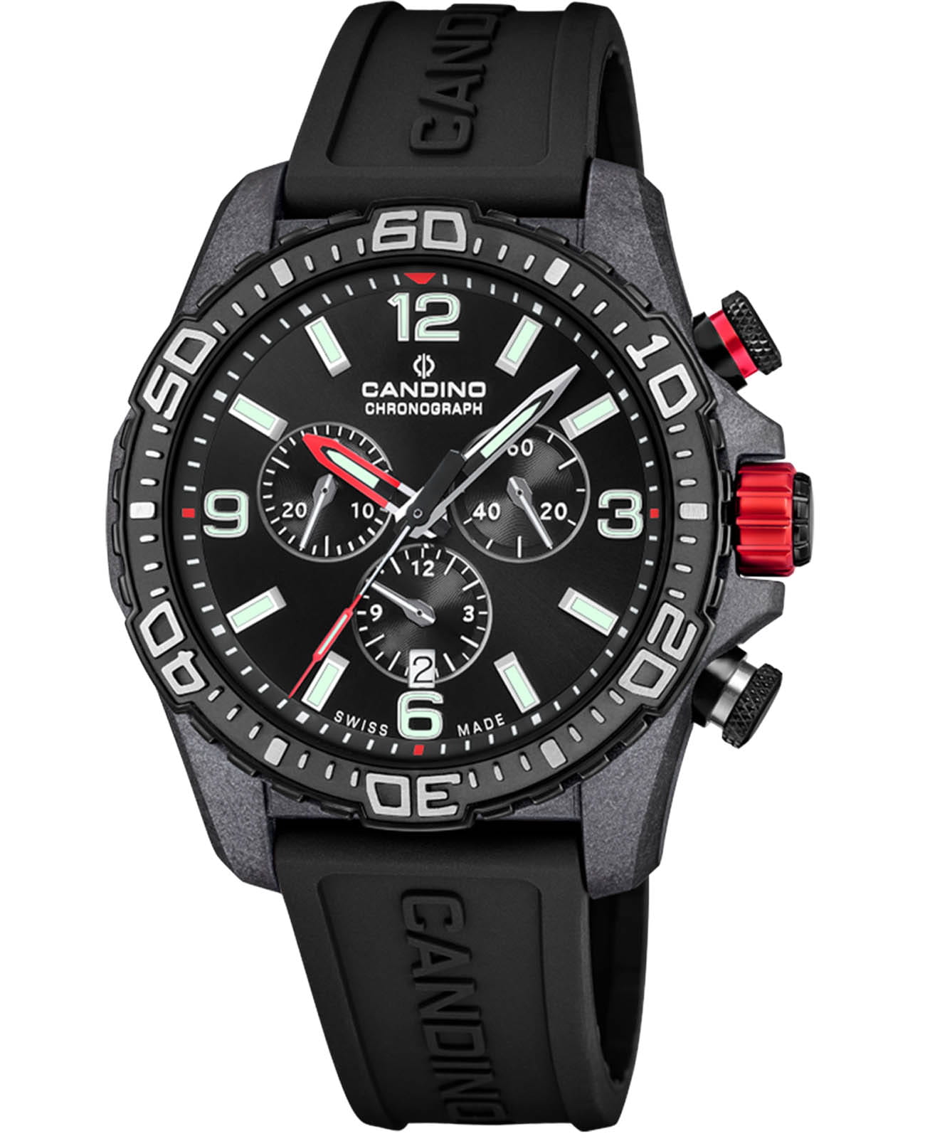Мужские швейцарские часы с хронографомХронографФункция позволяет измерять отрезки времени с особой точностью: часы, минуты, секунды. Верным признаком хронографа является наличие на циферблате 3 дополнительных окошек-счётчиков. Candino Chronos C4779/7 — это воплощение швейцарского мастерства и элегантности. Оснащённые высокоточным кварцевым механизмом, они обеспечивают безупречное измерение времени. Сапфировое стеклоСапфировое стеклоПрочный и надёжный материал из кристалла сапфира синтетического происхождения, характеризующийся особой твёрдостью и устойчивостью к царапинам и повреждениям. защищает циферблат от мелких царапин и повреждений, сохраняя его кристальную чистоту.