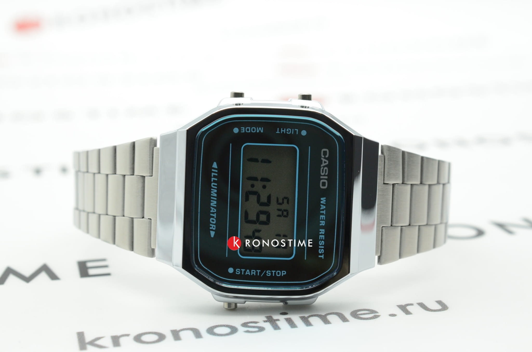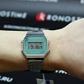 Серебристая цветовая гамма подойдёт к любой одежде, предоставляя простор для экспериментов. Цифровой дисплей в голубом цвете оснащён функцией подсветки, облегчающей считывание информации в темноте. Среди дополнительных возможностей числятся будильник, календарь, секундомер. Ударопрочный корпус сделан из полимерного пластика. Минеральное стекло отличается устойчивостью к появлению царапин. Габариты: 38,6 x 36,3 x 9,6 мм.