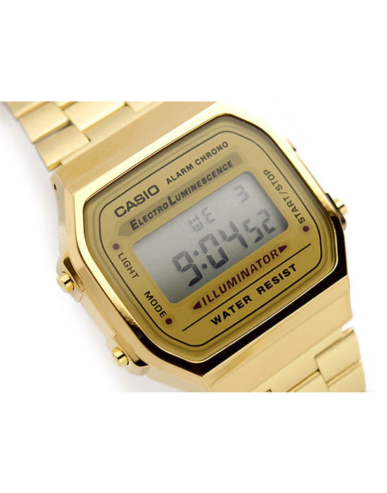 Брендовый аксессуар в золотом цвете имеет IP-покрытиеIP-покрытиеМетод ионного напыления. Демонстрирует повышенную устойчивость к истиранию, окислению и химическим веществам. Под воздействием высокого давления и температуры около 1500°C молекулы металла надёжно соединяются с частицами корпуса часов. стального браслета, защищающее от царапин и изнашивания, а также выполняющее декоративное предназначение. Оригинально смотрится циферблат с узором. Высокоточный кварцевый механизм. Яркая электролюминесцентная подсветка. Противоударный корпусУдаропрочный корпусМеханизм заключён в корпус, выполненный из современных материалов, устойчивых к ударам, механическим повреждениям и падению с высоты: инновационный пластик, карбон, нержавеющая сталь, титан. из надёжного пластика. Удобная застёжка расстёгивается одним касанием. Будильник, автоматический календарь. Габариты: 36,3 x 38,6 x 9,6 мм.