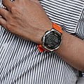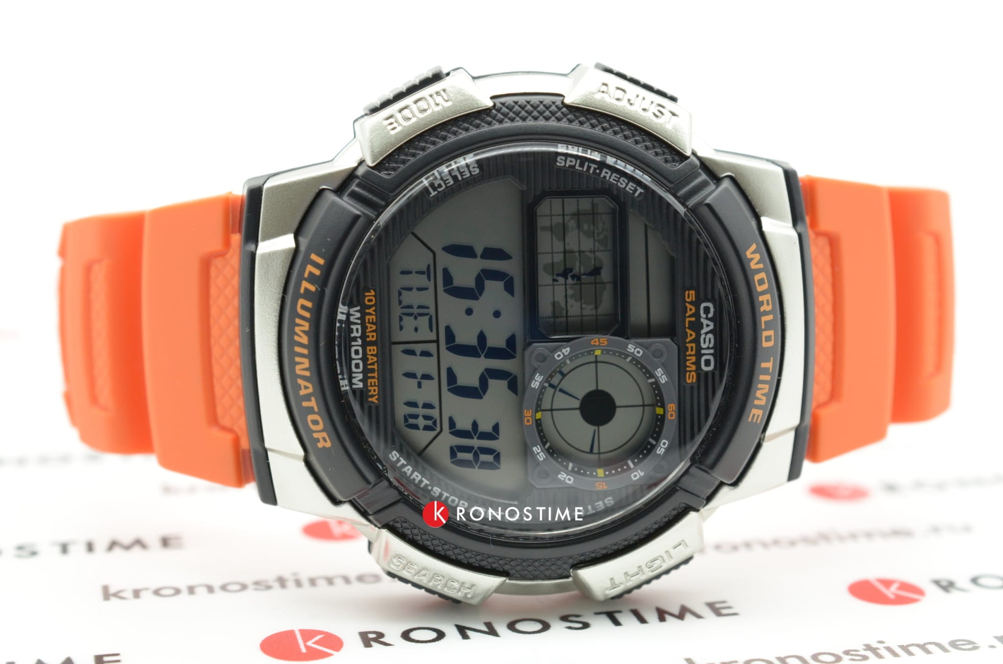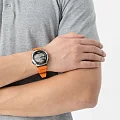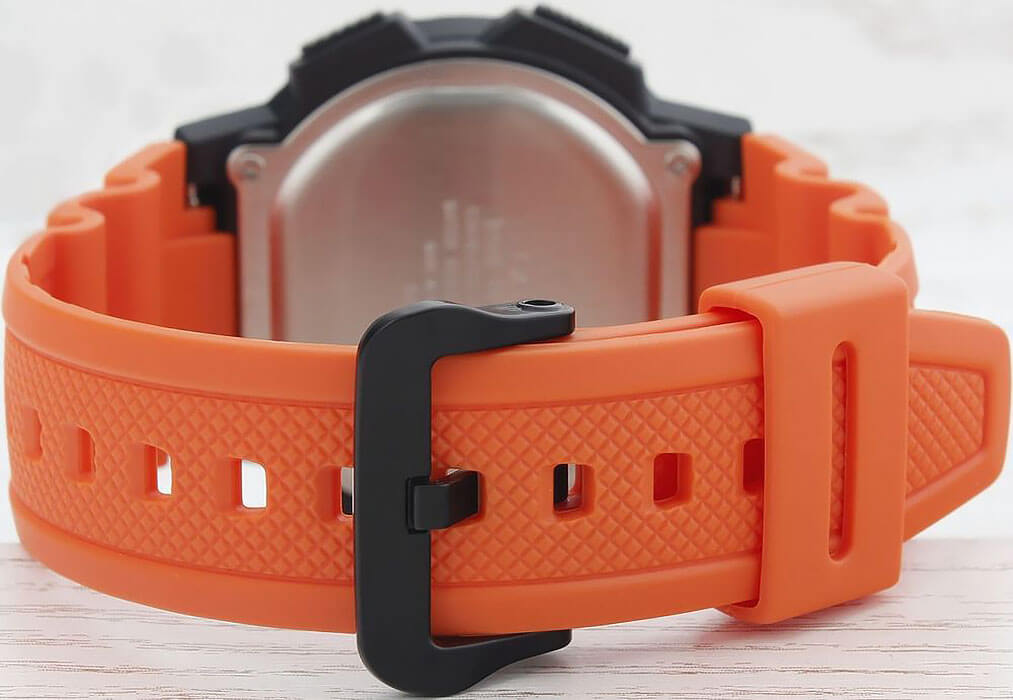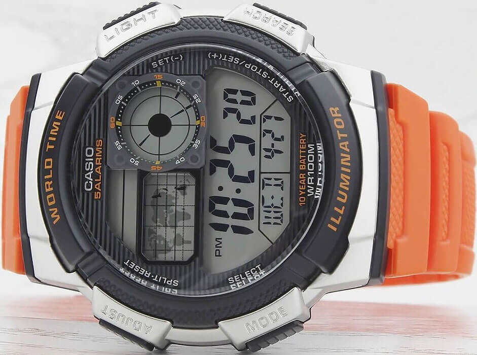 Наручные часы отличаются спортивным стилем. Броская модель привлекает яркой оранжевой расцветкой, это идеальный вариант на каждый день. Ударопрочный корпусУдаропрочный корпусМеханизм заключён в корпус, выполненный из современных материалов, устойчивых к ударам, механическим повреждениям и падению с высоты: инновационный пластик, карбон, нержавеющая сталь, титан. выполнен из пластика, материал устойчив к повреждениям. Кварцевый механизм работает от батарейки, рассчитанной на 10 лет. Водонепроницаемость 100 метров. Светодиодная подсветкаСветодиодная подсветкаСветодиодная или LED-подсветка обеспечивает появление яркого холодного свечения за счёт LED-элементов - маленьких лампочек. Они потребляют минимальное количество энергии, чаще всего можно встретить 1 светодиод, в нижней части циферблата. дисплея. СекундомерСекундомерСекундоме́р — прибор, способный измерять интервалы времени с точностью до долей секунды., 5 будильников, мировое времяМировое время Полезное часовое усложнение, отображающее время в основных городах и известных областях по всему миру, оно связано с часовыми поясами, удобно для путешественников и бизнесменов. , таймерТаймерОтсчитывает секунды в обратном направлении в заданном интервале времени., календарь. Прочное органическое стекло. Габариты: 43,7 x 48,1 x 13,7 мм.