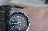 Японские спортивные мужские наручные часы AQ-S800WD-1ER с кварцевым механизмом. Оснащены функциями термометра, будильника, таймера, секундомера, мирового времени. Корпус - Пластиковый; Стекло - Пластик; Водозащита - 100 м. (WR 100); Материал ремешка - Нержавеющая сталь; Цвет ремешка - Серебристый; Цвет циферблата - Черный.