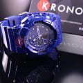 Аксессуар по достоинству оценят модницы, придерживающиеся активного образа жизни. Синий циферблат украшают металлические стразы, используемые вместо часовых индексов.Ударопрочный корпусУдаропрочный корпусМеханизм заключён в корпус, выполненный из современных материалов, устойчивых к ударам, механическим повреждениям и падению с высоты: инновационный пластик, карбон, нержавеющая сталь, титан. защищает японский кварцевый калибр, получающий энергию от батарейки. Срок её службы рассчитан на 2 года. Для подсветки используется LED-светодиодСветодиодная подсветкаСветодиодная или LED-подсветка обеспечивает появление яркого холодного свечения за счёт LED-элементов - маленьких лампочек. Они потребляют минимальное количество энергии, чаще всего можно встретить 1 светодиод, в нижней части циферблата.. Закаленное минеральное стекло.Водонепроницаемость до 10 бар. Гибкий, надёжный полимерный браслет. Ежечасный сигнал. Стрелки с покрытием NeobriteПодсветка NeobriteИспользование светонакопительных составов на основе сульфида цинка или алюмината стронция, яркий свет можно наблюдать на протяжении 6-10 часов после «зарядки» часов около источника света.. хронографХронографФункция позволяет измерять отрезки времени с особой точностью: часы, минуты, секунды. Верным признаком хронографа является наличие на циферблате 3 дополнительных окошек-счётчиков., таймер с автоповтором, UTCUTCВсемирное кординационное время, не имеющее привязки к географическому положению Гринвича, основывается на атомном отсчёте времени. Регулировка времени осуществляется более точно, чем устаревшее GMT.