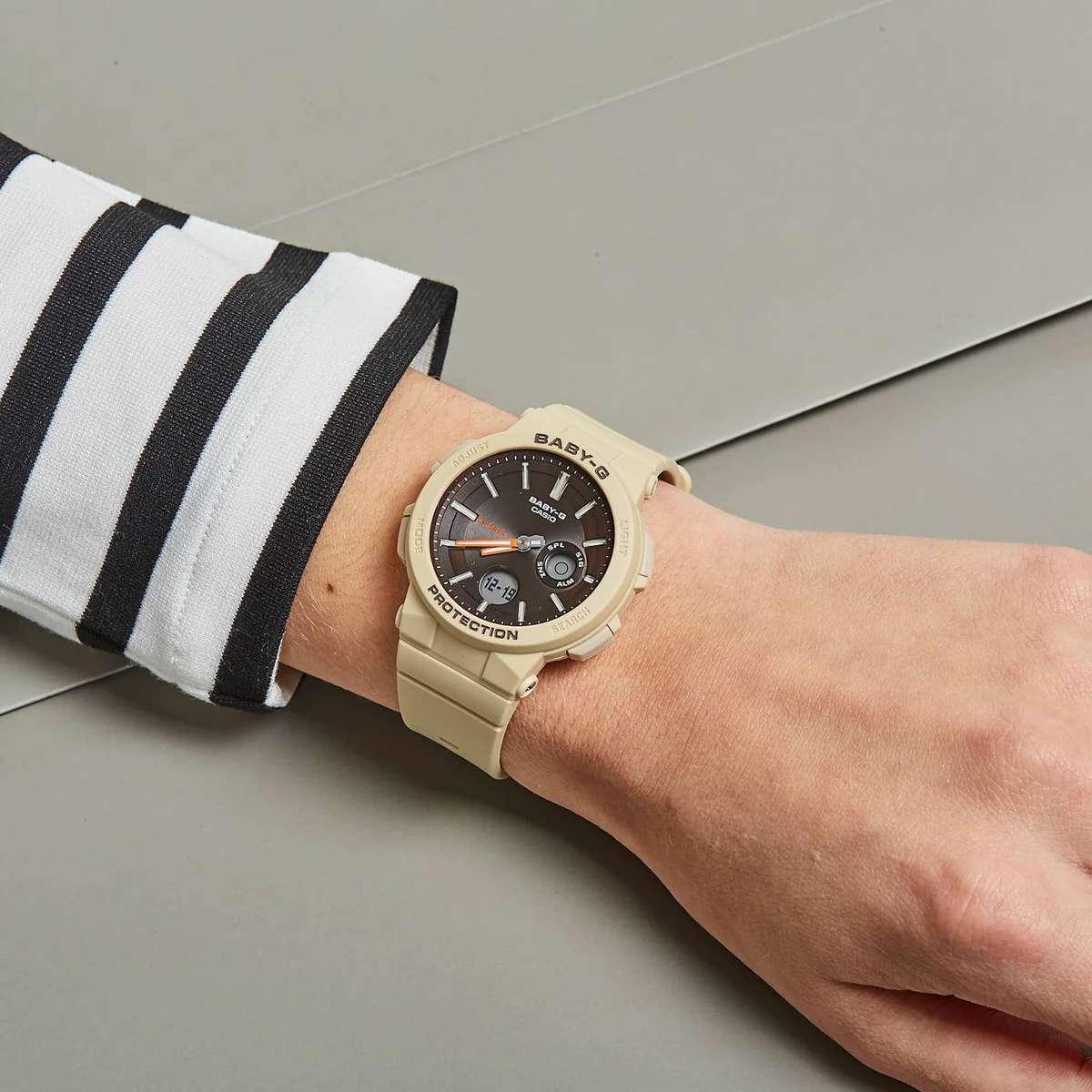 Женские японские часы Casio Baby-G BGA-255-5AER из коллекции Baby-G в бежевом исполнении подойдут любительницам спортивного стиля.