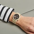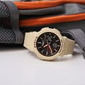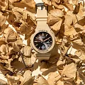 Модель обладает узорчатым циферблатом, оформленном в минималистичном дизайне. Ярко-оранжевые стрелки с люминесцентной подсветкойЛюминесцентное покрытиеПозволяет считывать показания времени в темноте. Производители наносят на стрелки, часовые индексы, безель или поверхность циферблата светонакопительный состав, дающий холодное свечение. облегчают читаемость данных. Полимерный противоударный корпусУдаропрочный корпусМеханизм заключён в корпус, выполненный из современных материалов, устойчивых к ударам, механическим повреждениям и падению с высоты: инновационный пластик, карбон, нержавеющая сталь, титан. спасает японский кварцевый механизм от повреждений и ударов. Срок службы батарейки – 3 года. Водостойкость 10 бар. Минеральное стеклоМинеральное стеклоМинеральное стекло представляет собой искусственно выращенный минерал кварца. Такое стекло отличается особой устойчивостью к повреждениям и царапинам. Уступает по некоторым качествам сапфировому стеклу. с закалкой. Гибкий полимерный браслет. Функции: 5 будильниковБудильникБуди́льник — часы, в заданный момент времени подающие звуковой, световой и/или в редких случаях другой сигнал., хронографХронографФункция позволяет измерять отрезки времени с особой точностью: часы, минуты, секунды. Верным признаком хронографа является наличие на циферблате 3 дополнительных окошек-счётчиков., таймерТаймерОтсчитывает секунды в обратном направлении в заданном интервале времени., секундомерСекундомерСекундоме́р — прибор, способный измерять интервалы времени с точностью до долей секунды., мировое времяМировое время Полезное часовое усложнение, отображающее время в основных городах и известных областях по всему миру, оно связано с часовыми поясами, удобно для путешественников и бизнесменов. – 29 часовых поясов, календарь. Габариты: 45,1 x 41 x 13,3 мм.