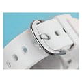 Японские женские часы-хронографХронографФункция позволяет измерять отрезки времени с особой точностью: часы, минуты, секунды. Верным признаком хронографа является наличие на циферблате 3 дополнительных окошек-счётчиков. Casio Baby-G BGD-501FS-2ER из коллекции Baby-G. Минеральное стеклоМинеральное стеклоМинеральное стекло представляет собой искусственно выращенный минерал кварца. Такое стекло отличается особой устойчивостью к повреждениям и царапинам. Уступает по некоторым качествам сапфировому стеклу. устойчивое к появлению царапин, обладающее высокой прозрачностью. Корпус часов изготовлен из полимерного материала. Электролюминесцентная подсветкаЭлектролюминесцентная подсветкаЭлектролюминесцентная панель устанавливается под ЖК-экраном часов, при нажатии кнопки электричество преобразуется в свет за счёт подачи напряжения на атомы фосфора, такой тип подсветки позволяет освещать весь циферблат. освещает весь циферблат, после отпускания кнопки свечение продолжается еще некоторое время. Ударопрочный корпусУдаропрочный корпусМеханизм заключён в корпус, выполненный из современных материалов, устойчивых к ударам, механическим повреждениям и падению с высоты: инновационный пластик, карбон, нержавеющая сталь, титан. защищает механизм от ударов и вибрации. Функция Мирового времениМировое время Полезное часовое усложнение, отображающее время в основных городах и известных областях по всему миру, оно связано с часовыми поясами, удобно для путешественников и бизнесменов. , автоматический переход на зимнее и летнее время, возможность включения/отключения данной функции. СекундомерСекундомерСекундоме́р — прибор, способный измерять интервалы времени с точностью до долей секунды. с точностью измерения 1/100 секунды и измерением до 23 часов 59 минут 59,99 cек. ТаймерТаймерОтсчитывает секунды в обратном направлении в заданном интервале времени. обратного отсчета (диапазон времени 24 часа), автоматический календарь, 12/24 отображение времени, будильникБудильникБуди́льник — часы, в заданный момент времени подающие звуковой, световой и/или в редких случаях другой сигнал.. Функция включения/отключения звука кнопок. Класс водозащиты: 200 метров, позволит плавать, нырять и заниматься другими водными видами спорта. Ремешок из полимерного материала на стандартной застежке.