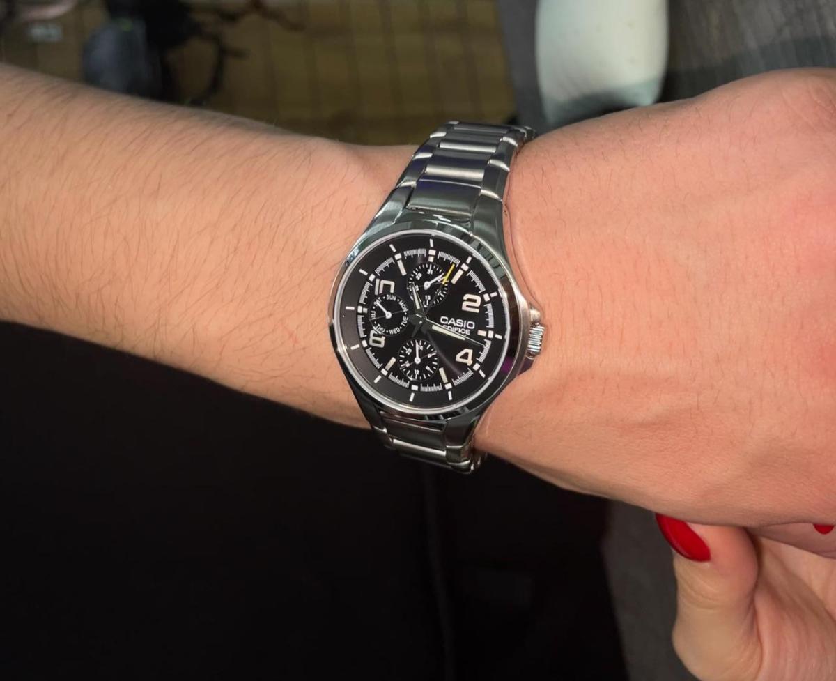 Приобрел часы в сентябре 2014 года. Вначале часы полностью устраивали, однако спустя полтора года стали отставать, принес в сервис, там сказали, что требуется ремонт часового механизма за 50% от цены часов. Честно говоря разочарован таким низким качеством, так всегда пользовался Casio и считал их образцом качества и долговечности
