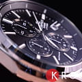 Кварцевый японский механизм Miyota. Точность хода не хуже -10 +15 сек./в месяц. Часы оснащены функцией хронографа. Циферблат чёрного цвета с контрастными индексами. Стрелки и индексы с светонакопительным нанесением. Корпус и браслет выполнены из нержавеющей стали. Сапфировое стекло устойчиво к появлению царапин. Водонепроницаемость 100М. В часах можно плавать. Степень водонепроницаемости не является величиной, эквивалентной функциональной рабочей глубине.