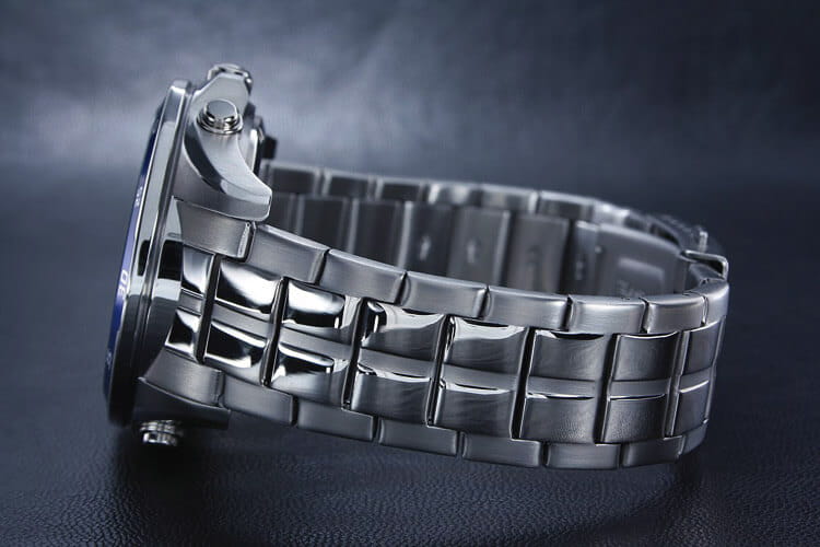 Практичный и надёжный аксессуар стильно смотрится на запястье и подходит к любой одежде. Синий циферблат дополнен контрастными стрелками, часовыми метками и счётчиками, что обеспечивает идеальную читаемость показателей. Особую привлекательность представляет собой безельБезельВнешний ободок, закрепляющий стекло. В спортивных часах так называется поворотное кольцо с делениями на циферблате, выполняет роль таймера – замеряет отрезки времени на шкале. Неподвижный безель – элемент декора. Однонаправленно вращающийся безель на дайверских часах позволяет фиксировать моменты погружения и выныривания на поверхность. с IP-покрытиемIP-покрытиеМетод ионного напыления. Демонстрирует повышенную устойчивость к истиранию, окислению и химическим веществам. Под воздействием высокого давления и температуры около 1500°C молекулы металла надёжно соединяются с частицами корпуса часов. синего цвета. Высокоточный кварцевый механизм Miyota с точностью хода +/- 15 сек/мес. Надёжный стальной браслет. Закаленное минеральное стекло. Люминесцентная подсветкаЛюминесцентное покрытиеПозволяет считывать показания времени в темноте. Производители наносят на стрелки, часовые индексы, безель или поверхность циферблата светонакопительный состав, дающий холодное свечение.. Водонепроницаемость до 100 метров. Отображение даты, секундомер. Габариты: 47,2 x 54 x 13,9 мм.