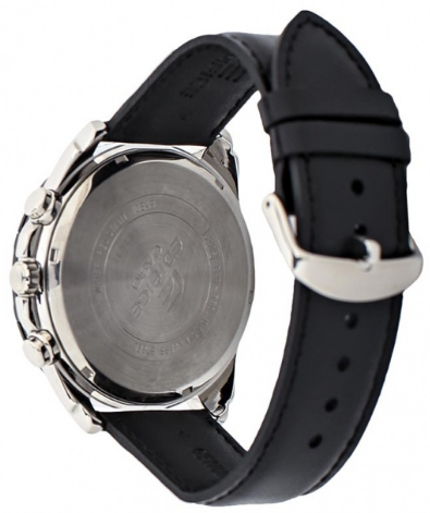 Мужские наручные часы Casio Edifice надежные и практичные. Кварцевый японский механизм Miyota. Отображение времени в различных часовых поясах с обозначением 29 основных городов в этих зонах и универсальное время. (в режиме «текущего времени» отображается индикатором на «12 часах»). Будильник (устанавливается и отображается индикатором на «6 часах»). Стрелки и индексы с светонакопительным нанесением. Корпус выполнениз высококачественной стали с антикоррозийными свойствами. Ремешок из натуральной кожи черного цвета. Минеральное стекло устойчиво к появлению царапин Циферблат - рельефный, стилизованный под картографическое изображение земного шара. Водонепроницаемость (10 Бар).