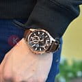 Стильные японские наручные кварцевые мужские часы. Круглый корпус  часов выполнен из стали с антикоррозийными свойствами с IP покрытием. Коричневый карбоновый циферблат с контрастными элементами дизайна. Водонепроницаемость 10 ATM. Минеральное стекло, устойчивое к появлению царапин. Ремешок из натуральной кожи коричневого цвета. Часы оснащены функцией хронографа.
