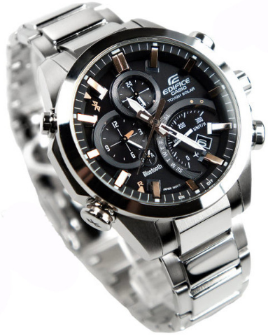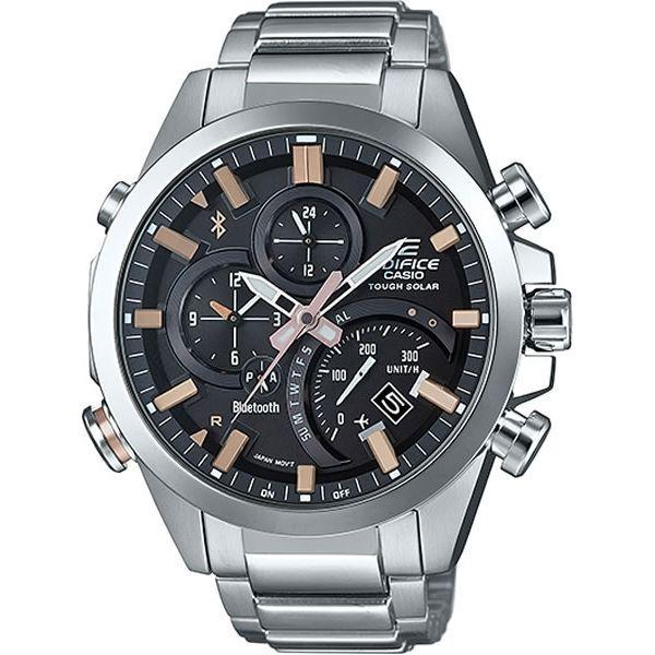 Мужские наручные часы Casio Edifice надежные и практичные. Солнечная подзаряжающаяся батарейка обеспечивает питание часов для работы. Часы оснащены функциями: Авиарежим (режим оффлайн). Часы переключаются в режим оффлайн нажатием кнопки. С помощью этой функции можно отключить радио- и GPS-приемник на время перелета. Функция поиска телефона. Не помните, куда положили смартфон. При нажатии кнопки на ваших часах смартфон подает звуковой сигнал. Индикатор электронной почты. На циферблате символически отображается наличие новых сообщений электронной почты. Функция мирового времени. Отображение текущего времени в основных городах и конкретных областях по всему миру.