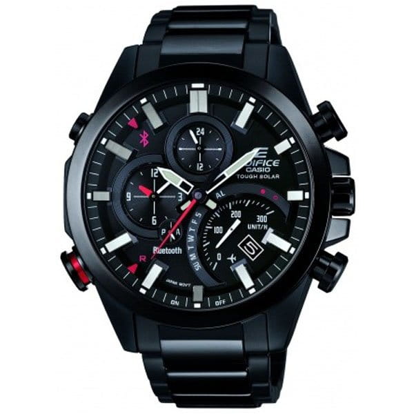 Стильный представитель автомобильной серии станет идеальным аксессуаром для ежедневного ношения. На чёрном фоне ярко выделяются красные элементы, придавая более динамичный характер. Наручные часы показывают действительно точное время благодаря технологии Bluetooth 4.0BluetoothСовременная технология, позволяющая синхронизировать часы с телефоном и переносить данные. Часы с Bluetooth расширяют возможности вашего смартфона и делают его использование ещё более удобным., модель корректирует показатели с помощью синхронизации с интернет-сервером точного времени. Японский кварцевый механизм получает питание за счёт солнечной батареи, реализуется технология . Минеральное стекло. Ударопрочный корпусУдаропрочный корпусМеханизм заключён в корпус, выполненный из современных материалов, устойчивых к ударам, механическим повреждениям и падению с высоты: инновационный пластик, карбон, нержавеющая сталь, титан. и браслет из нержавеющей стали 316L с IP-покрытиемIP-покрытиеМетод ионного напыления. Демонстрирует повышенную устойчивость к истиранию, окислению и химическим веществам. Под воздействием высокого давления и температуры около 1500°C молекулы металла надёжно соединяются с частицами корпуса часов.. Возможность включить авиарежим. Заводная головка с системой защиты. Люминесцентная подсветкаЛюминесцентное покрытиеПозволяет считывать показания времени в темноте. Производители наносят на стрелки, часовые индексы, безель или поверхность циферблата светонакопительный состав, дающий холодное свечение.. Водонепроницаемость 10 бар. Отображение наличия поступивших сообщений электронной почты, будильник, секундомер, функция поиска телефона, хронографХронографФункция позволяет измерять отрезки времени с особой точностью: часы, минуты, секунды. Верным признаком хронографа является наличие на циферблате 3 дополнительных окошек-счётчиков., поиск телефона, отображение числа и дня недели, расчёт средней скорости пройденной дистанции. Габариты: 52 x 48,1 x 14,2 мм.