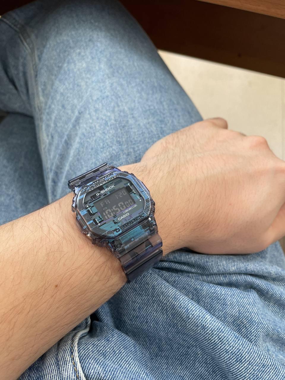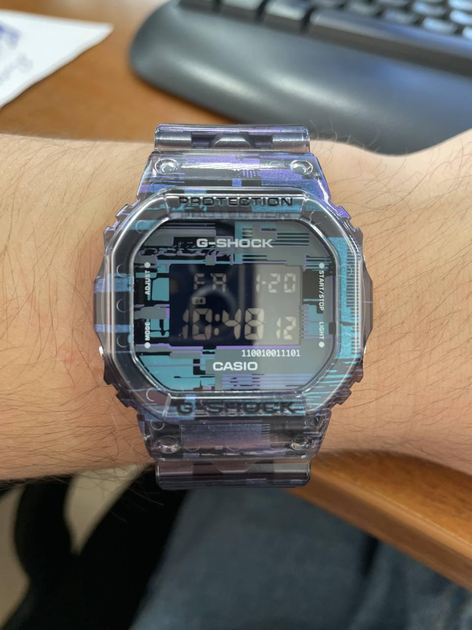 Новинки от G-Shock нацелены на любителей ярких и современных аксессуаров. G-Shock. Цветовая гамма часов вдохновлена эффектом «глитч», который возникает на мониторе из-за цифровой ошибки, аппаратного или программного сбоев. В IT-индустрии такое часто называют «артефактами», когда на экране появляются элементы, не относящиеся к отображаемому объекту. Циферблат украшен двоичным кодом, в виде которого представлены любые данные внутри цифровых систем.