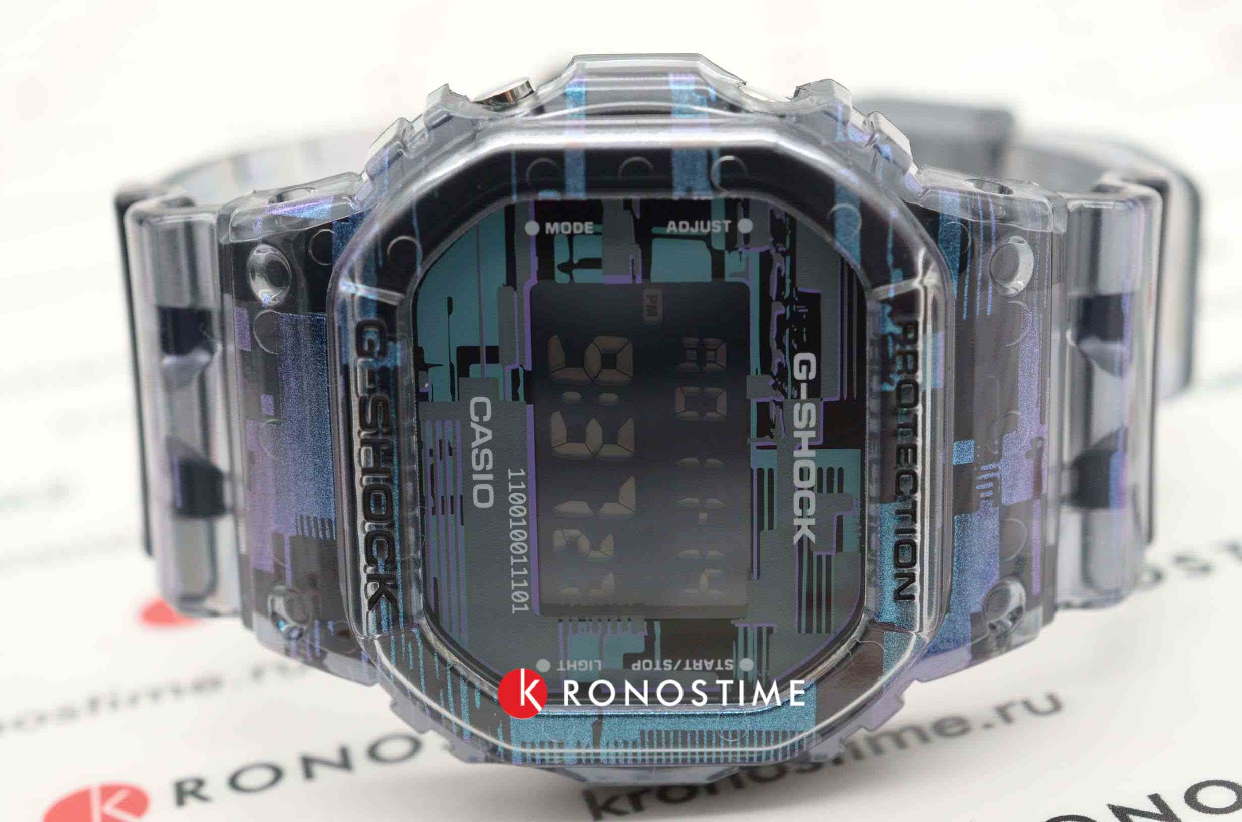 Новинки от G-Shock нацелены на любителей ярких и современных аксессуаров. G-Shock. Цветовая гамма часов вдохновлена эффектом «глитч», который возникает на мониторе из-за цифровой ошибки, аппаратного или программного сбоев. В IT-индустрии такое часто называют «артефактами», когда на экране появляются элементы, не относящиеся к отображаемому объекту. Циферблат украшен двоичным кодом, в виде которого представлены любые данные внутри цифровых систем.