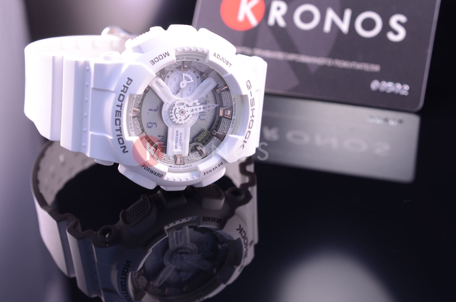 Белоснежная расцветка великолепно гармонирует с контрастными элементами циферблата. Несмотря на внушительный вес, модель отличается лёгким весом и комфортно сидит на запястье. Наручные часы обладают противоударным корпусомУдаропрочный корпусМеханизм заключён в корпус, выполненный из современных материалов, устойчивых к ударам, механическим повреждениям и падению с высоты: инновационный пластик, карбон, нержавеющая сталь, титан., который стойко переносит удары и падения с высоты. Он надёжно защищает японский кварцевый механизм, благодаря которому часы показывают время с абсолютной точностью. Батарейка рассчитана на 3 года работы. Автоматическая светодиодная подсветкаСветодиодная подсветкаСветодиодная или LED-подсветка обеспечивает появление яркого холодного свечения за счёт LED-элементов - маленьких лампочек. Они потребляют минимальное количество энергии, чаще всего можно встретить 1 светодиод, в нижней части циферблата. циферблата. Минеральное стекло. Сохранение водонепроницаемости до 20 бар. Функции: мировое времяМировое время Полезное часовое усложнение, отображающее время в основных городах и известных областях по всему миру, оно связано с часовыми поясами, удобно для путешественников и бизнесменов. , таймер обратного отсчёта, хронографХронографФункция позволяет измерять отрезки времени с особой точностью: часы, минуты, секунды. Верным признаком хронографа является наличие на циферблате 3 дополнительных окошек-счётчиков., будильник, автоматический календарь, UTCUTCВсемирное кординационное время, не имеющее привязки к географическому положению Гринвича, основывается на атомном отсчёте времени. Регулировка времени осуществляется более точно, чем устаревшее GMT.