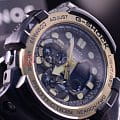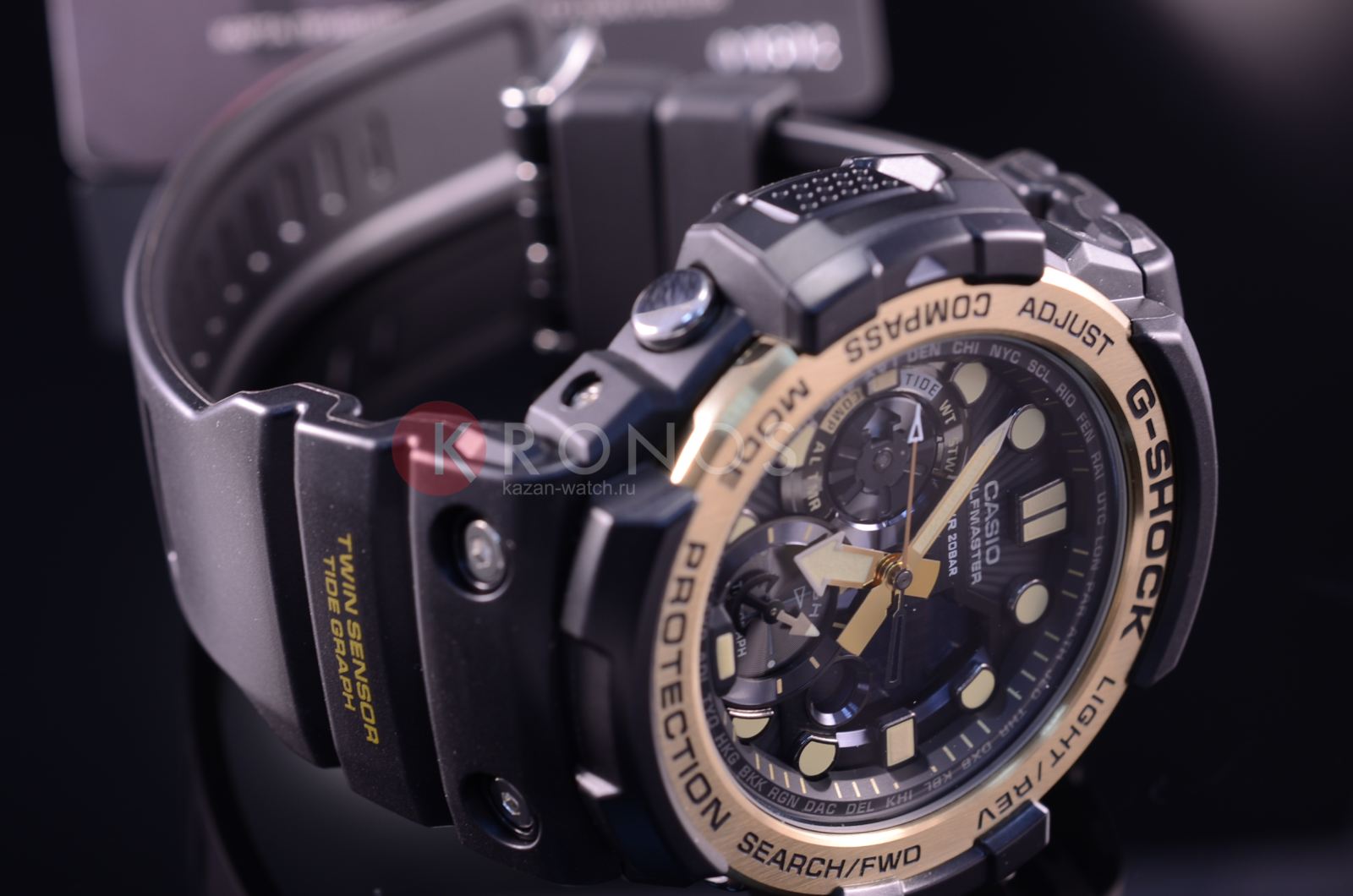 Классические наручные кварцевые мужские часы. Ударопрочный круглый корпус часов выполнен из высокопрочной стали с IP покрытием со вставками из пластика. Синий фон циферблата и золотые 3D элементы дизайна. Безель из стали с IP покрытием золотого цвета. Водонепроницаемость часов составляет 20 ATM (возможны занятия дайвингом). Минеральное стекло, устойчивое к появлению царапин. Часы прочно удерживаются на руке ремешком из синего пластика. Неоновый дисплей Neobrite, будильник, таймер обратного отсчета, функция смещения стрелок, термометр, компас, приливный календарь