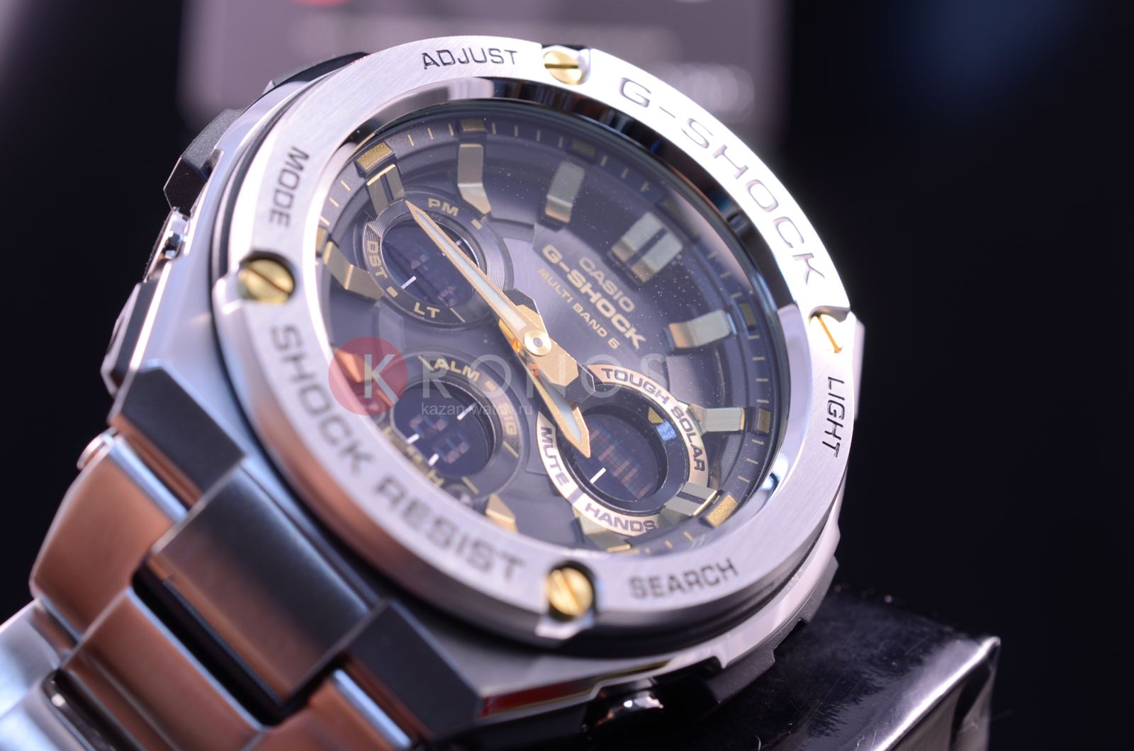 G-STEEL, сверхпрочные мужские часы, со стальным корпусом и браслетом. В этой коллекции дизайн приближается к классическому образу механических наручных часов, при этом сохранив уникальную джишоковую начинку, что делает эти часы несравнимо прочнее и функциональнее, чем их механические собратья. Сверхмощная автоматическая LED-подсветка дисплея. Таймер обратного отсчета с функцией автоповтора. Максимальное время измерения 60 минут. Секундомер с точностью показаний 1/100 сек и максимальным временем измерения 24 часа. 5 ежедневных будильников. Автоматический календарь. Функция мирового времени. Отображение времени в 12-часовом или 24-часовом формате. Особая ударопрочная конструкция защищает от ударов и вибрации. Минеральное стекло устойчивое к возникновению царапин. Корпус и браслет выполнены из высококачественной стали с антикоррозийными свойствами. Водонепроницаемость (20 Бар).