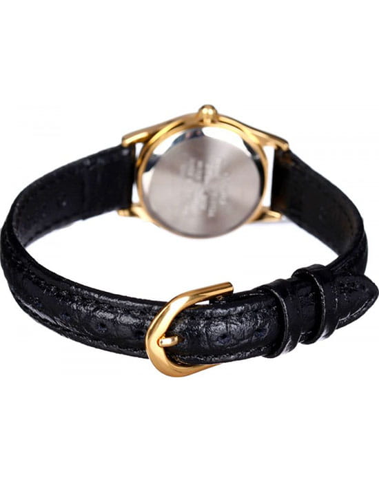 Яркий, переливающийся на свету золотой корпус данной модели сделан из латуни. Его гладкие края красиво обрамляют круглый циферблат золотистого цвета. Для удобства прочтения арабские цифры выдержаны в черном цвете, и поэтому моментальное определение времени не составит труда. Удобный, черный ремень сделан из кожи и привлекательно контрастирует вместе с корпусом. Классическая, и одновременно прочная модель наручных часов от Casio послужит своей обладательнице долгие годы.